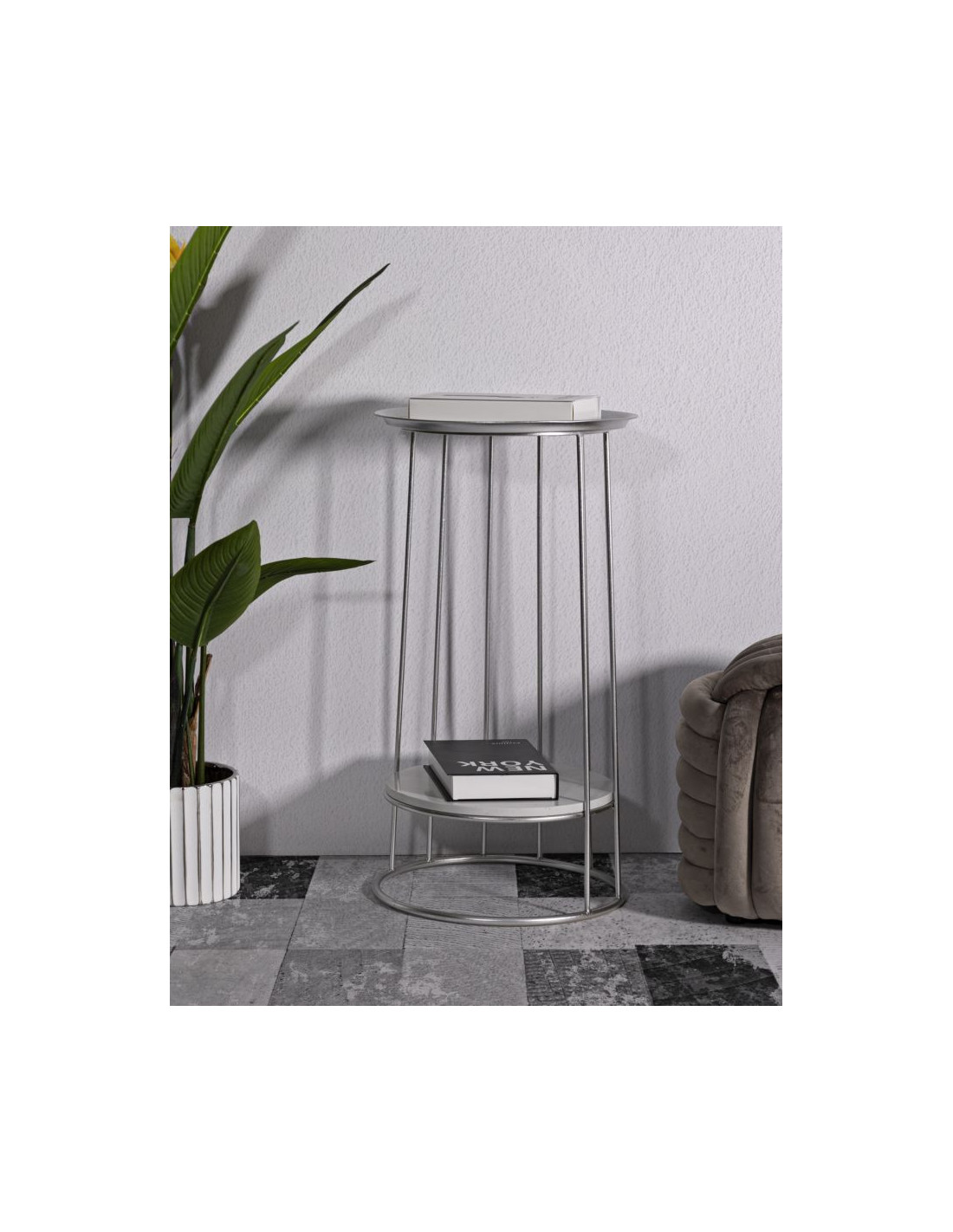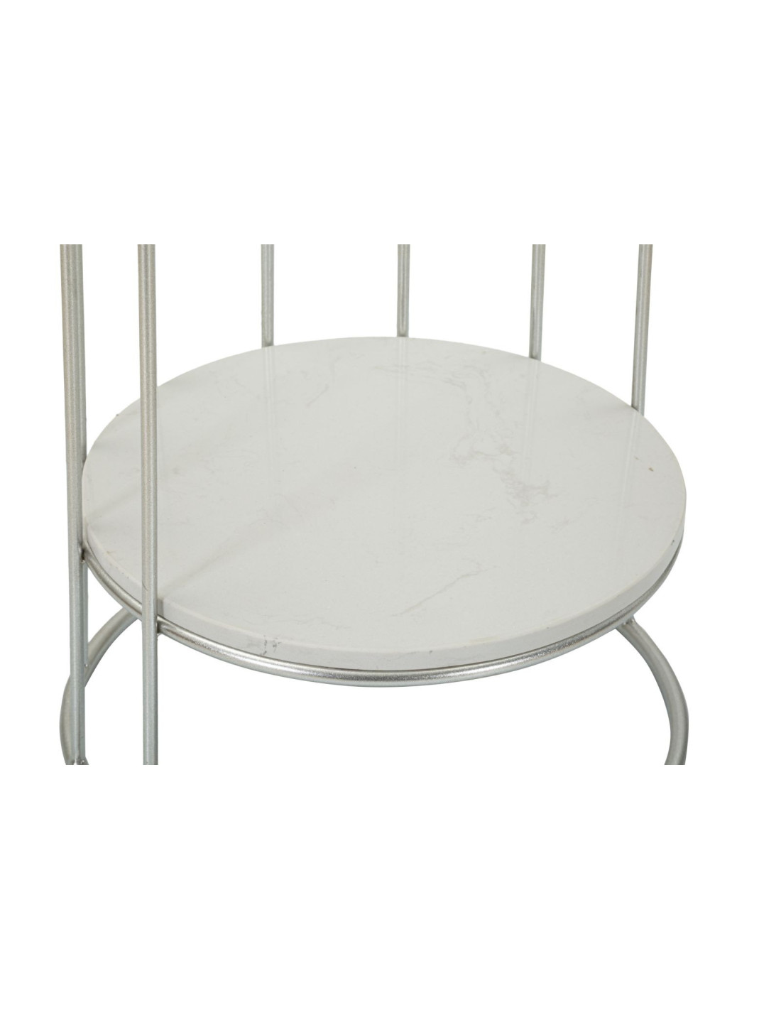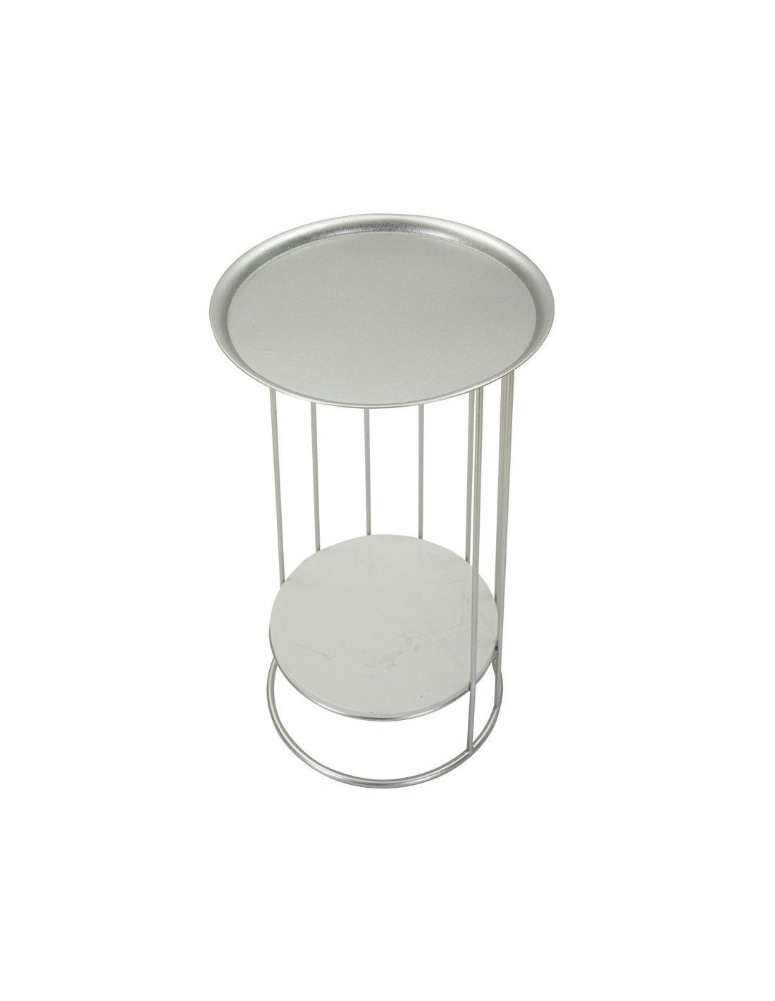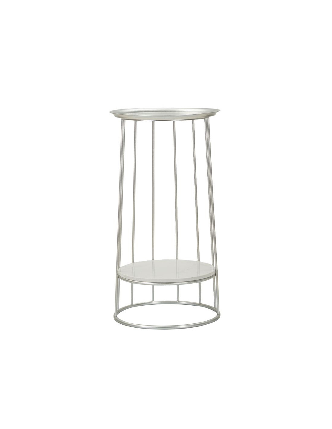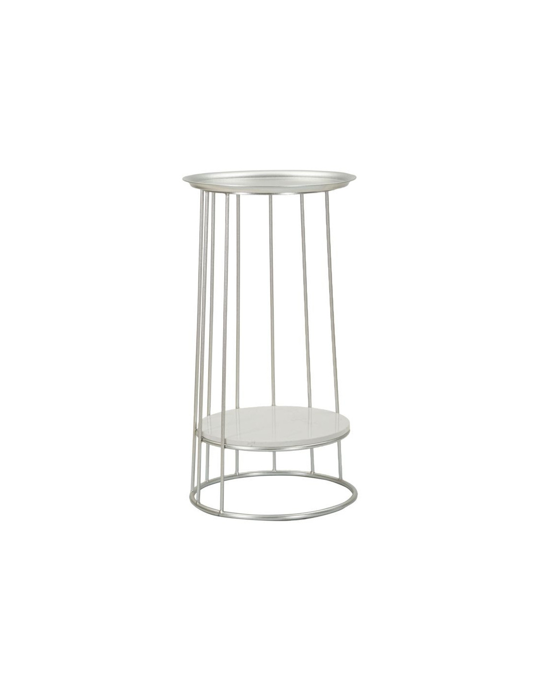 Sellette haute moderne Ronde 1 étagère en Métal Argenté Marbre Blanc Towery