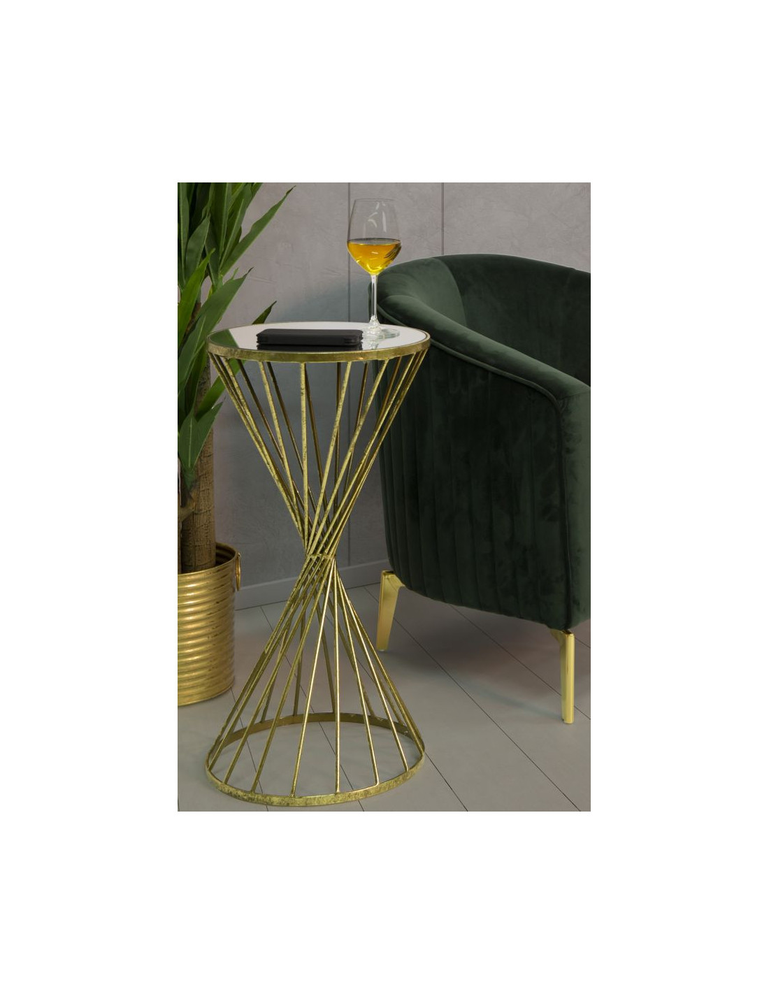 Sellette haute moderne Ronde en Métal Doré Miroir Hypnos