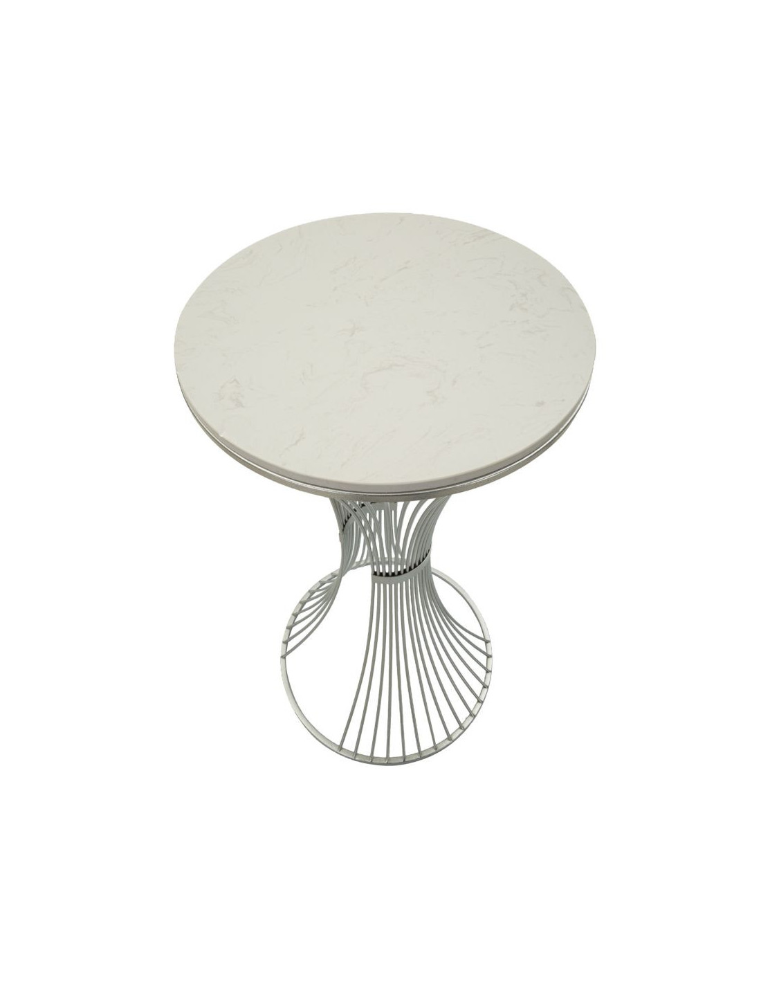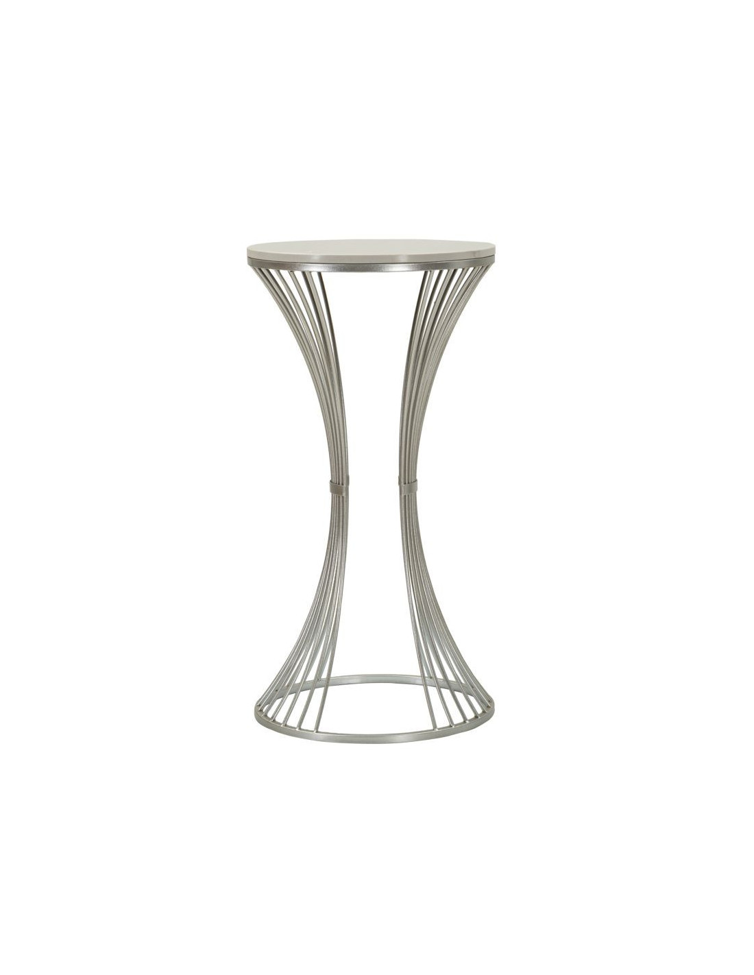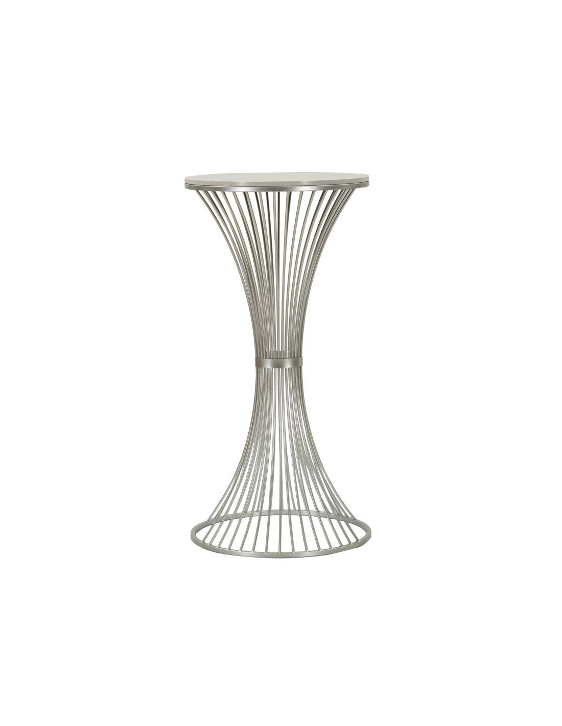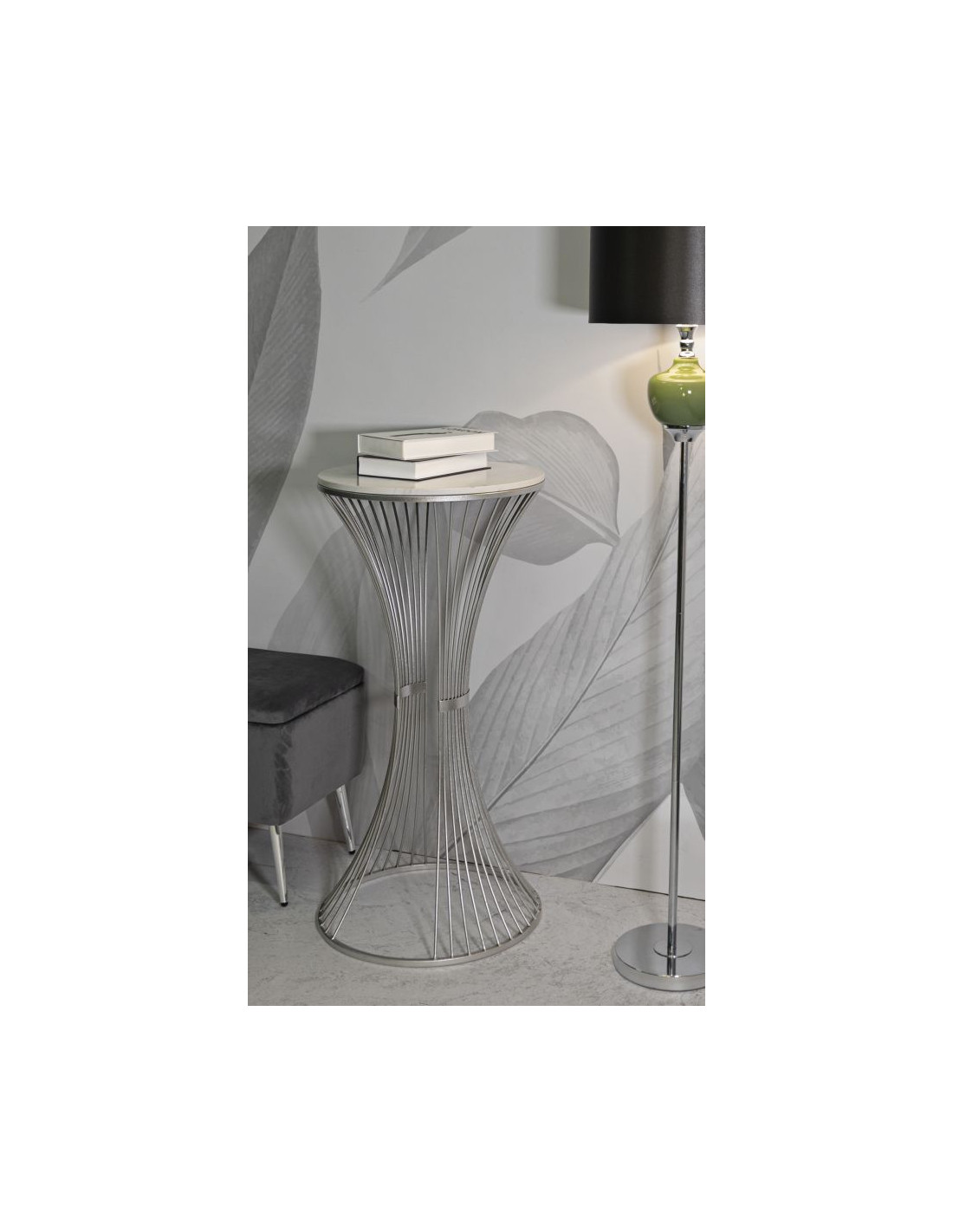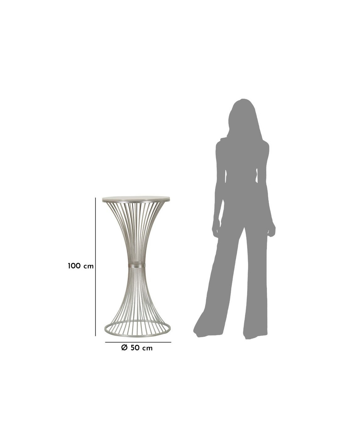 Sellette haute moderne Ronde Hauteur 100 cm en Marbre Blanc Métal Argenté Funnel
