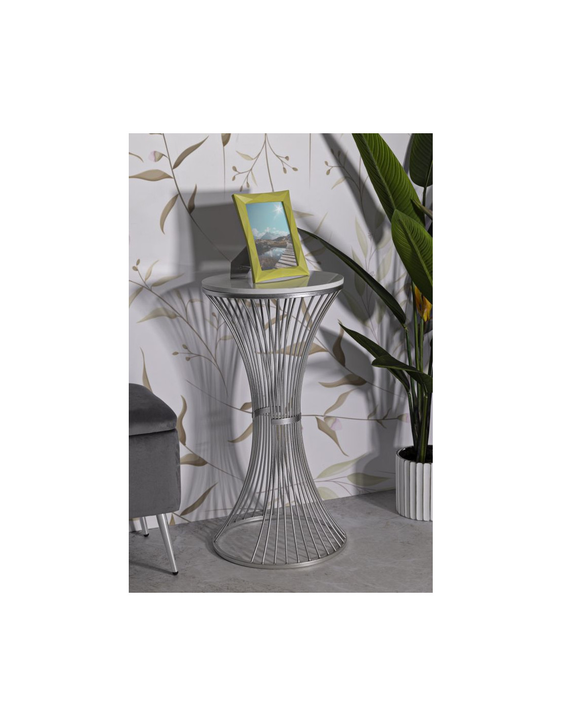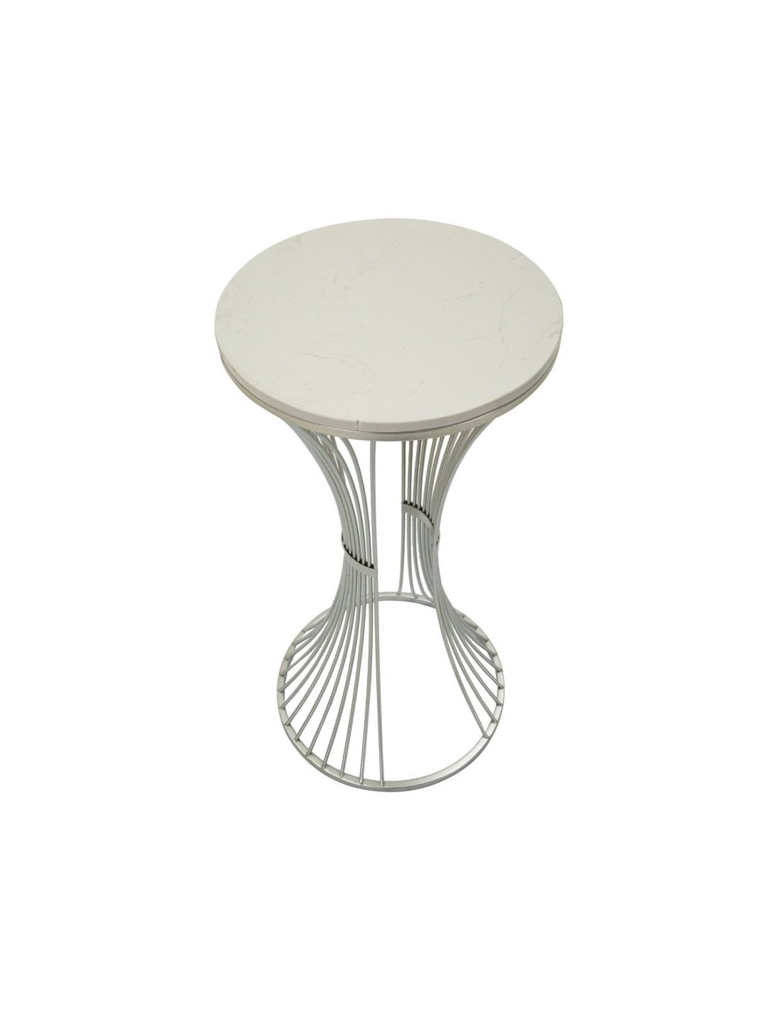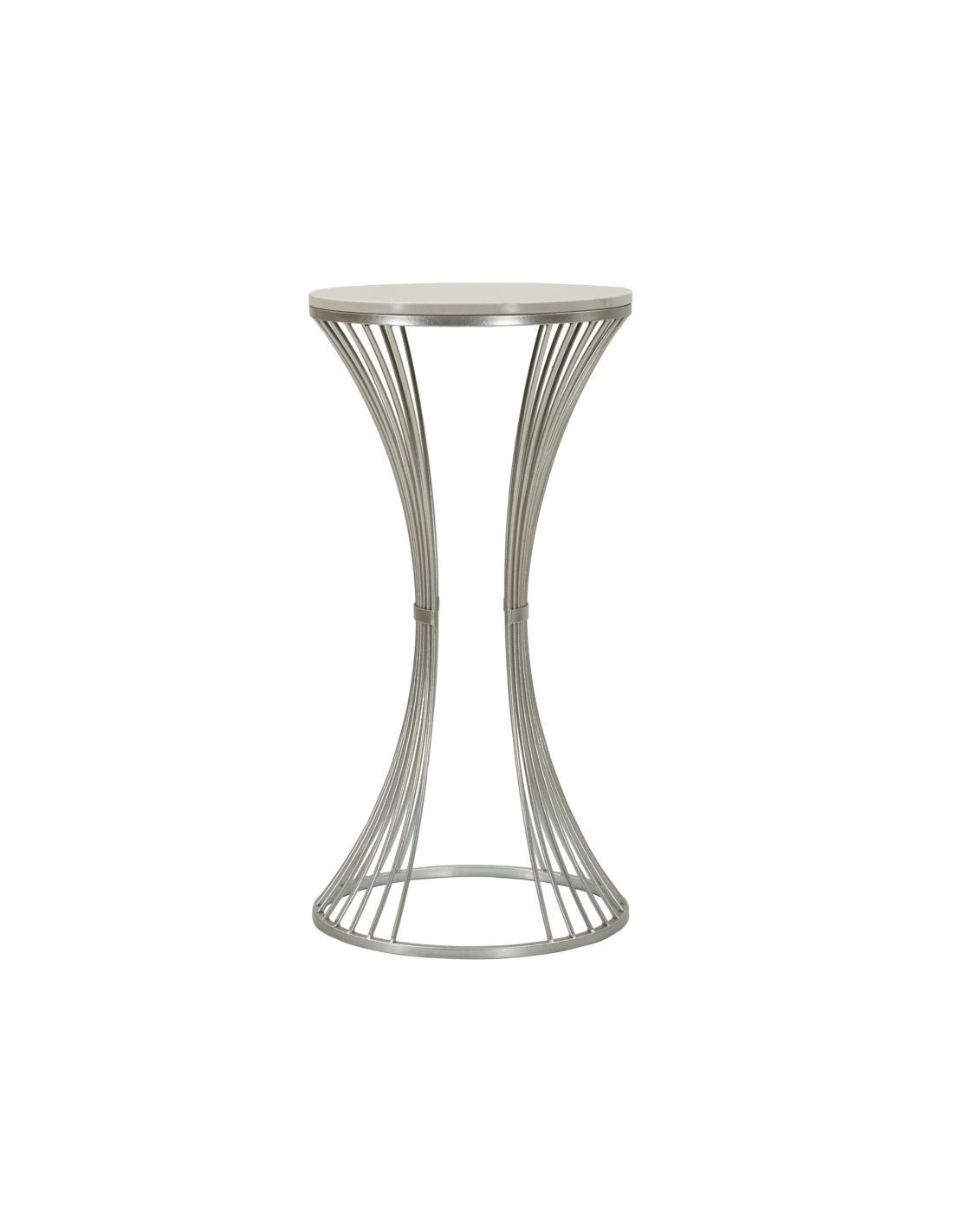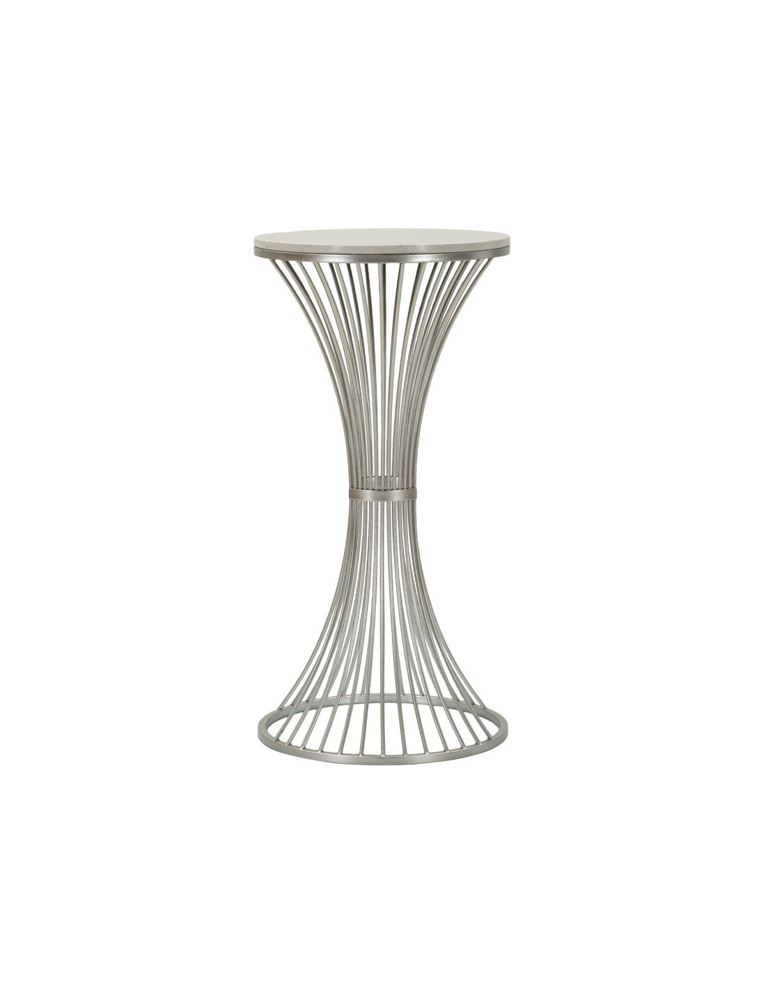 Sellette haute moderne Ronde Hauteur 79 cm en Marbre Blanc Métal Argenté Funnel