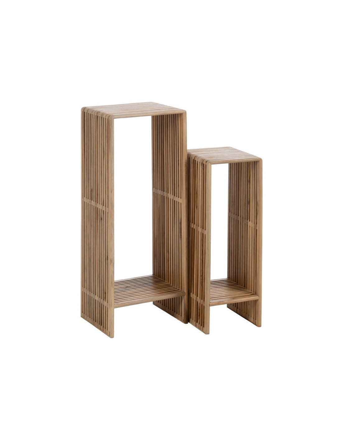 Sellette haute moderne scandinave Rectangulaire 1 étagère Bois de teck recyclé Naturel Bellamonte (Lot de 2)