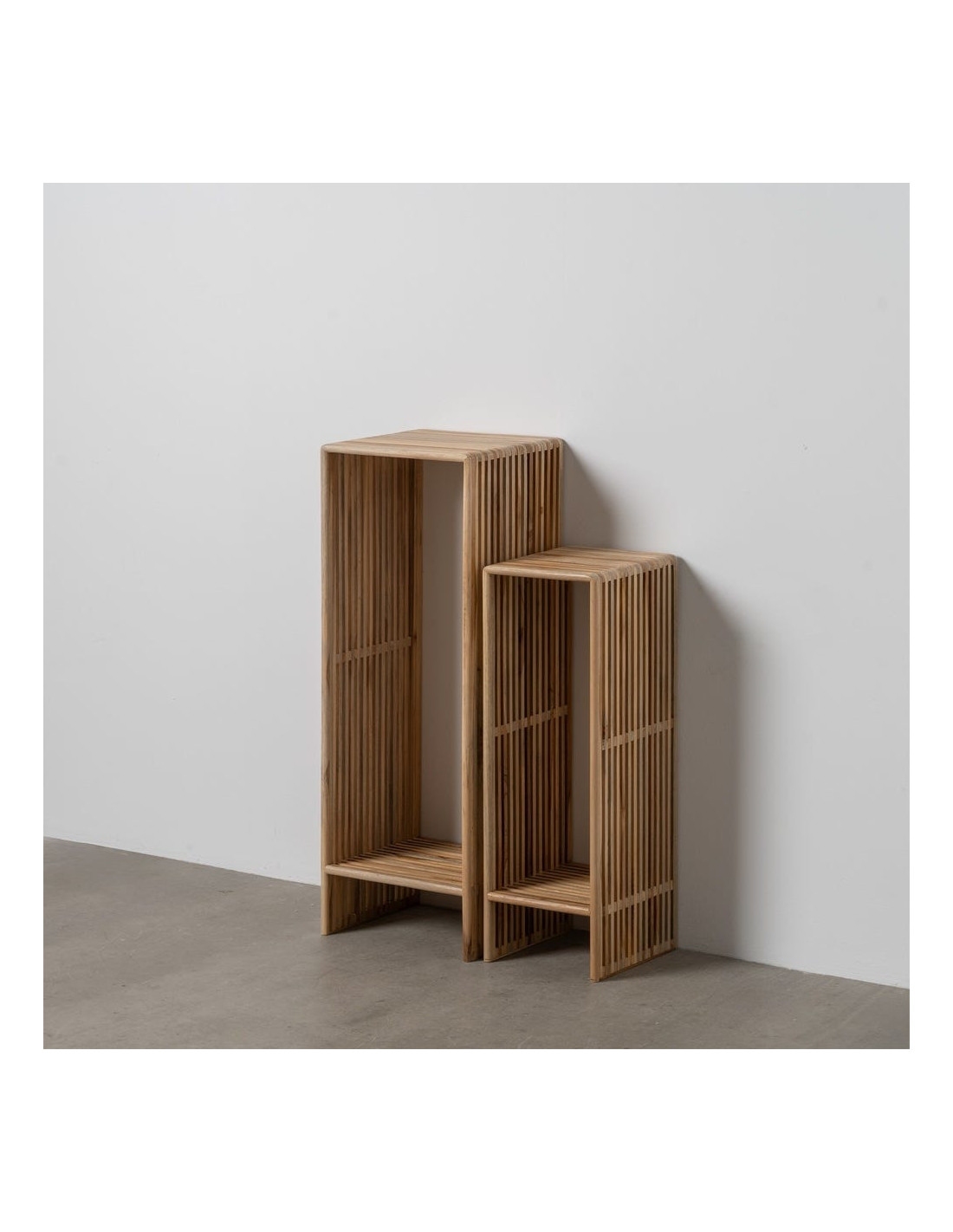 Sellette haute moderne scandinave Rectangulaire 1 étagère Bois de teck recyclé Naturel Bellamonte (Lot de 2) - 1