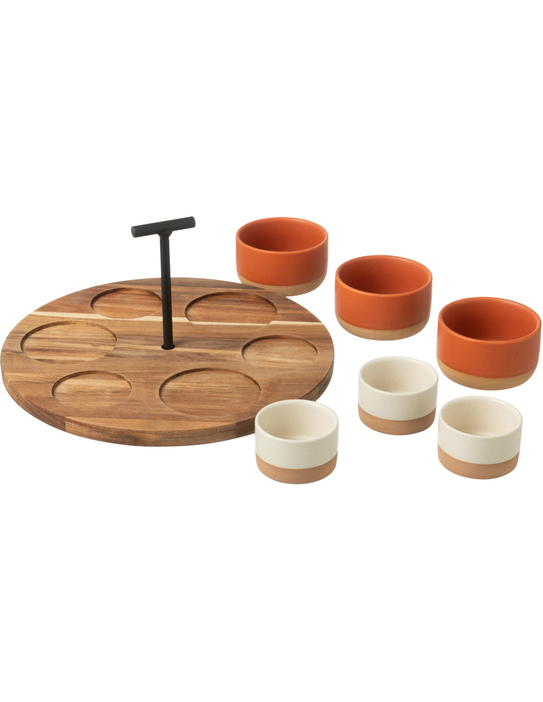 Service à tapas rond 6 Bols en Bois Naturel Céramique Terracotta Blanc Noxi