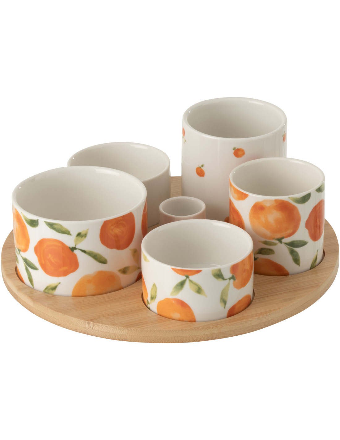 Set apéro 6 Bols style méditerranéen Céramique Blanc Orange Motif oranges Bambou Naturel Fruttia