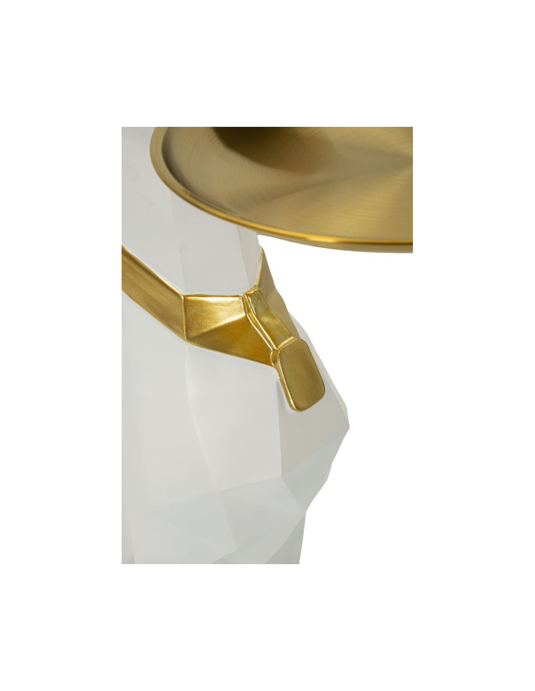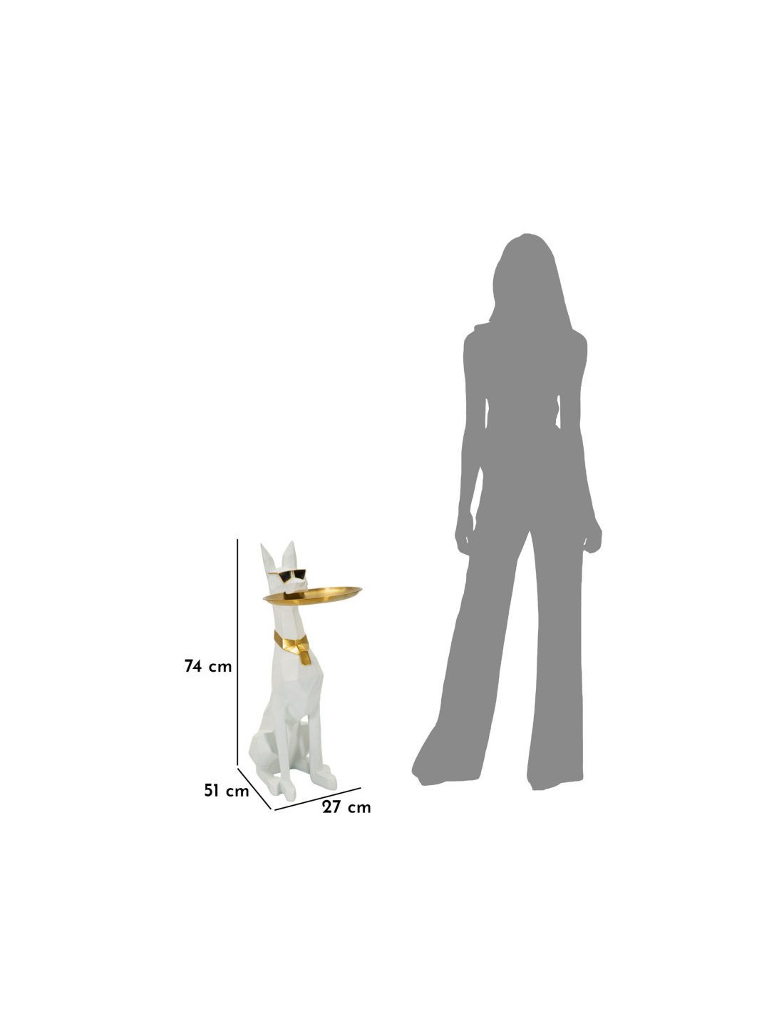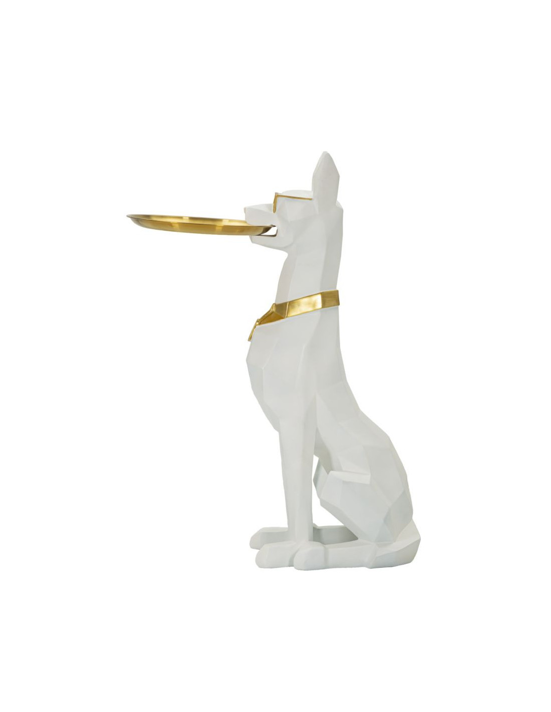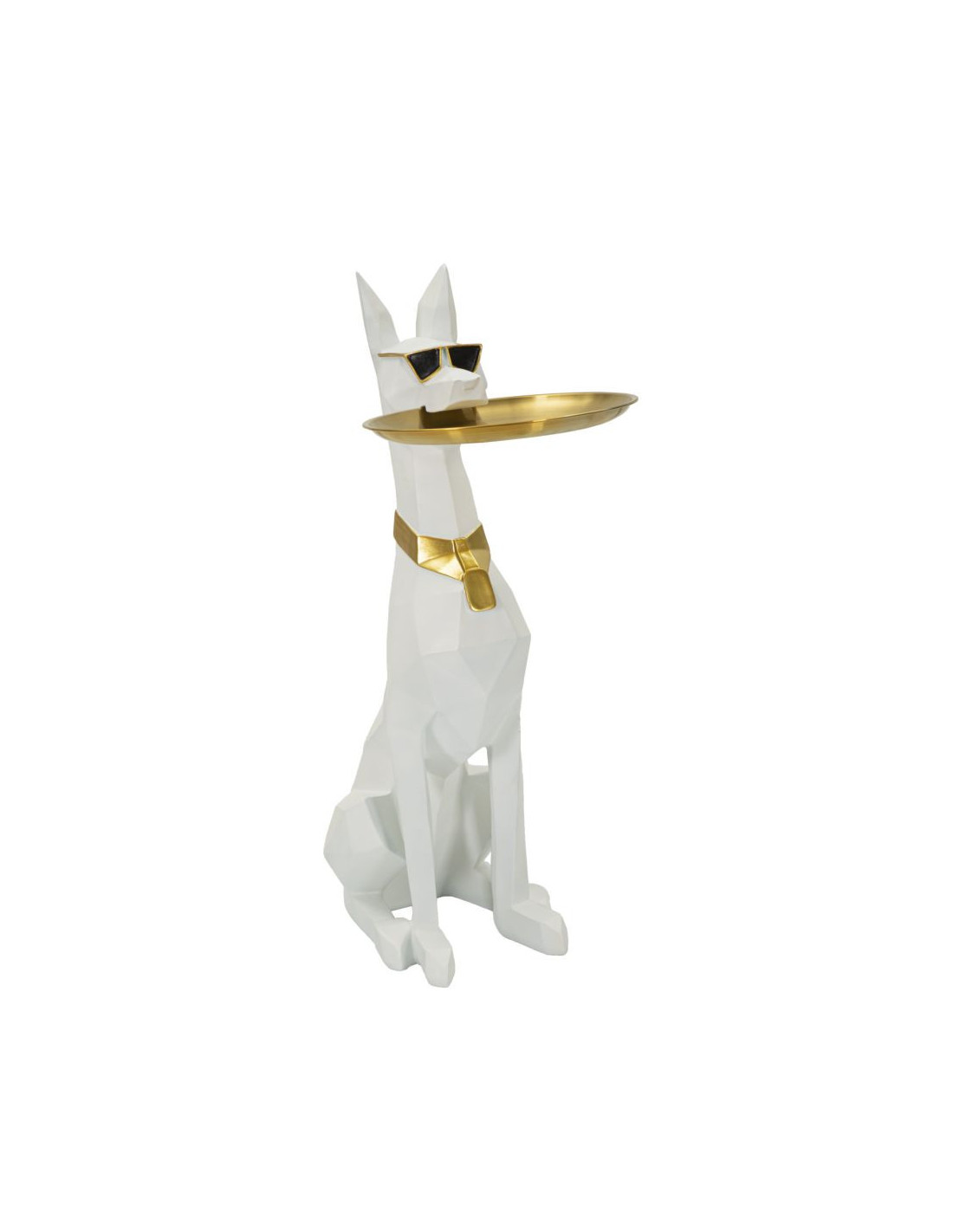 Statue déco moderne Dobermann avec plateau Hauteur 74 cm en Résine Métal Blanc Doré Ory