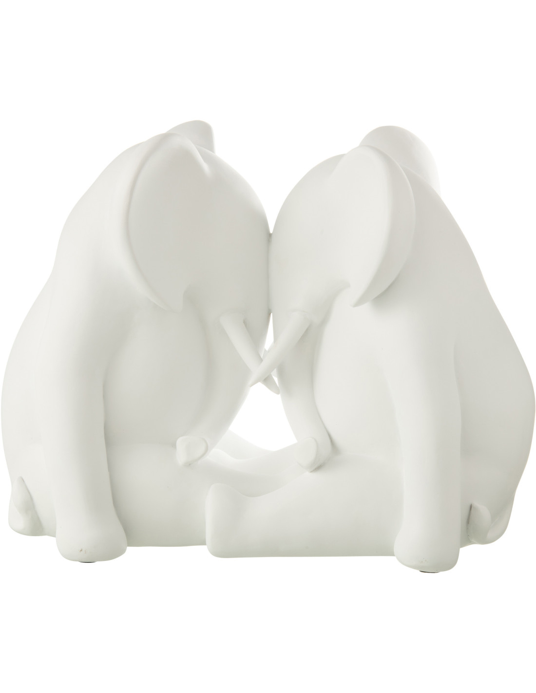 Statue déco moderne Éléphant Face à Face Hauteur 27 cm en Résine Blanc Zena