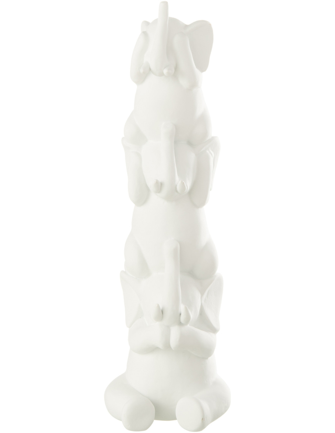 Statue déco moderne Éléphants Pyramide Entendre Voir Se taire Hauteur 31 cm en Résine Blanc Zena