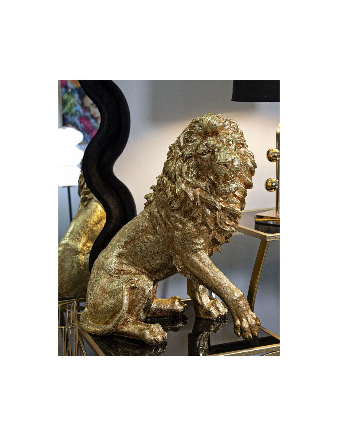 Statue déco moderne Lion Hauteur 55 cm Résine Doré Shant