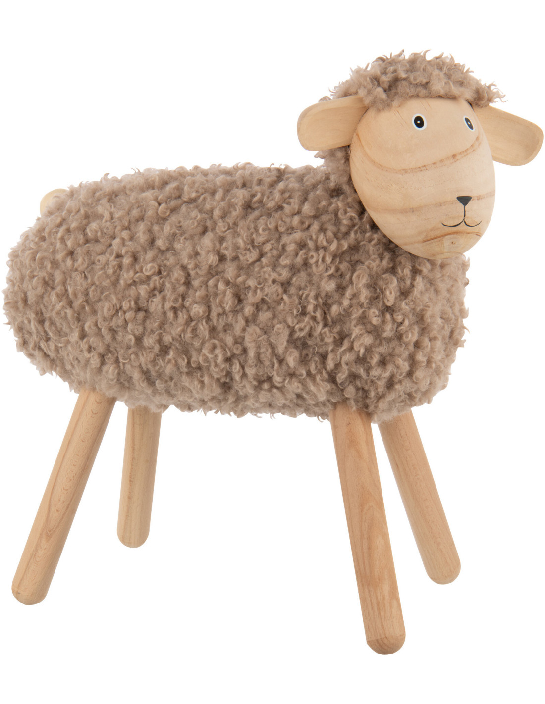 Statue déco Mouton bouclette Hauteur 45 cm en Bois de hêtre Naturel Tissu Beige Bouclé Belito