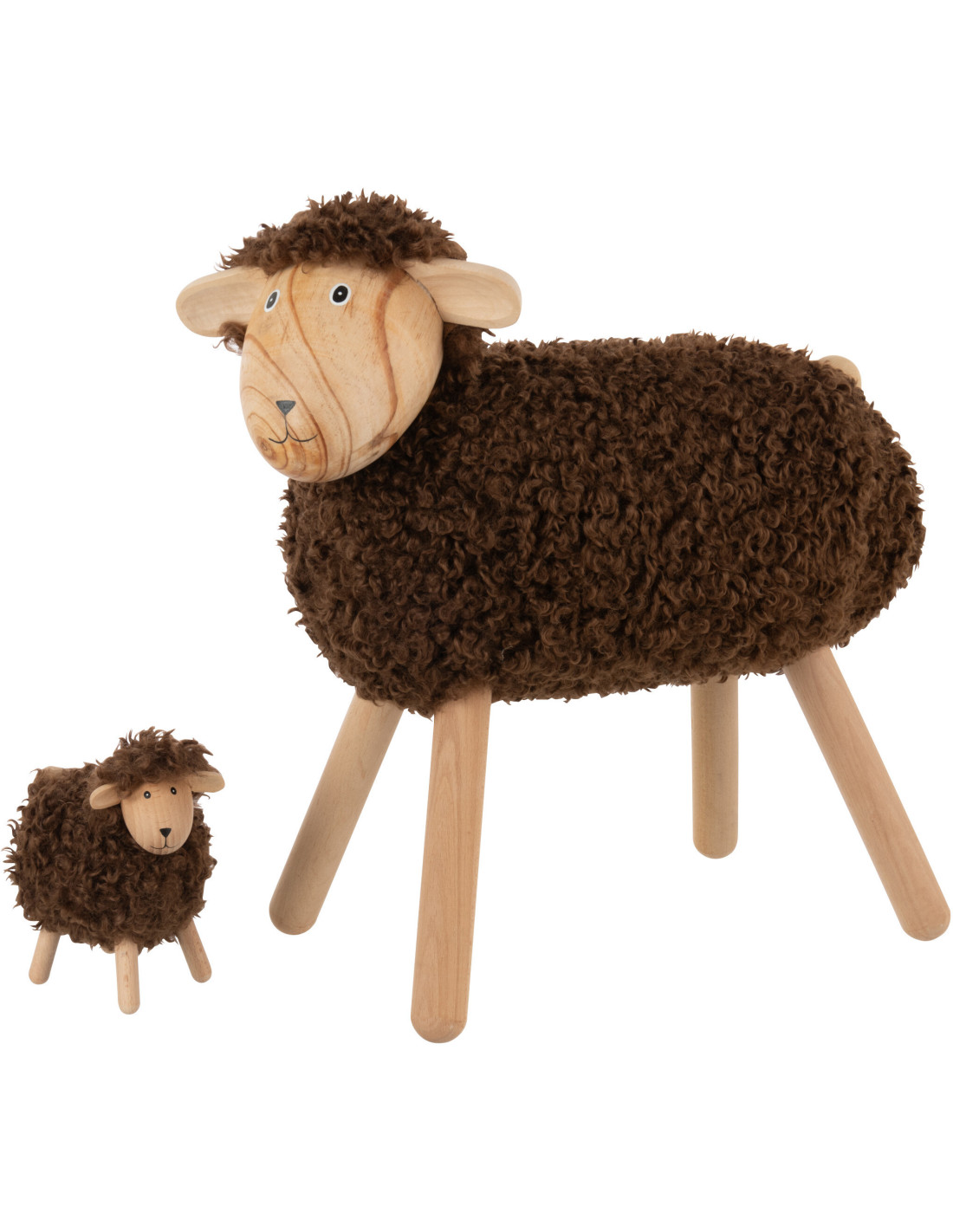 Statue déco Mouton bouclette Hauteur 45 cm en Bois de hêtre Naturel Tissu Marron foncé Bouclé Belito
