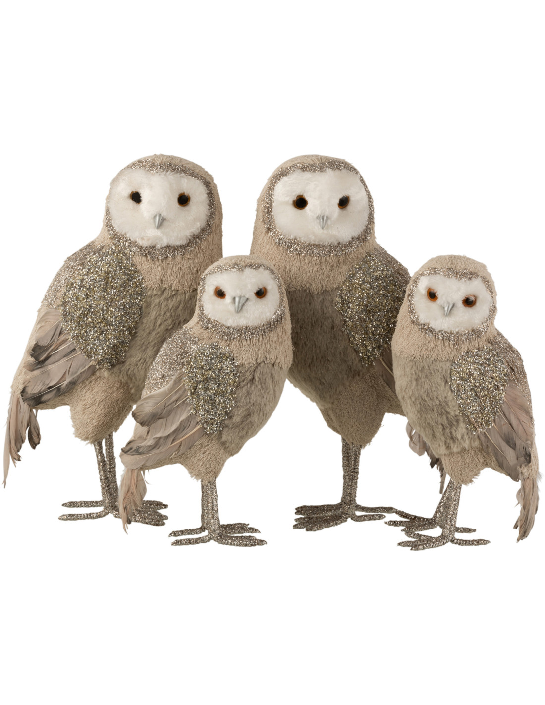 Statue déco XL Chouette Toot en Fourrure synthétique Gris Avec paillettes (Lot de 2) - 1