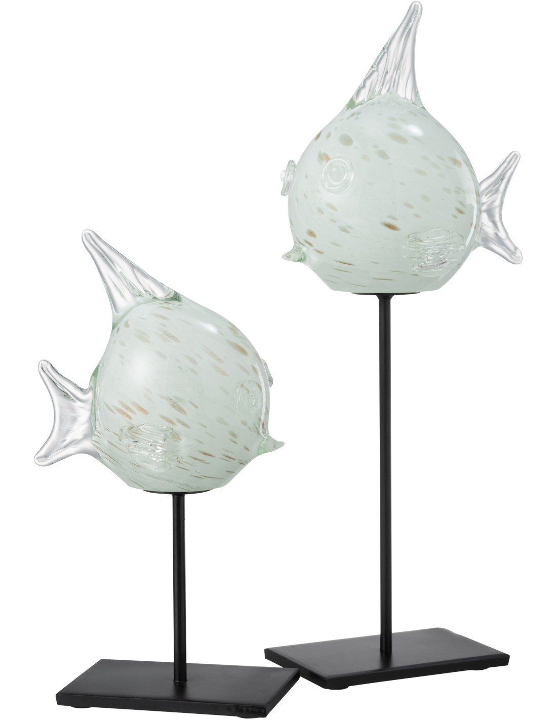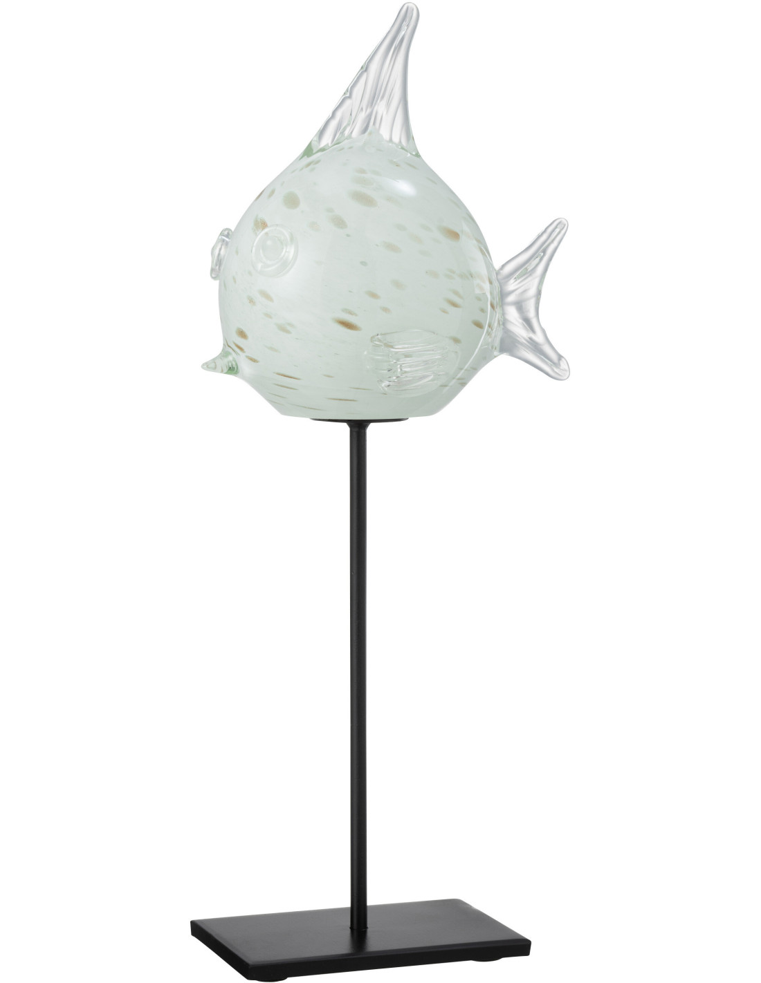 Statue déco XL Poisson Bloat en Verre Blanc Métal Noir Sur socle - 1