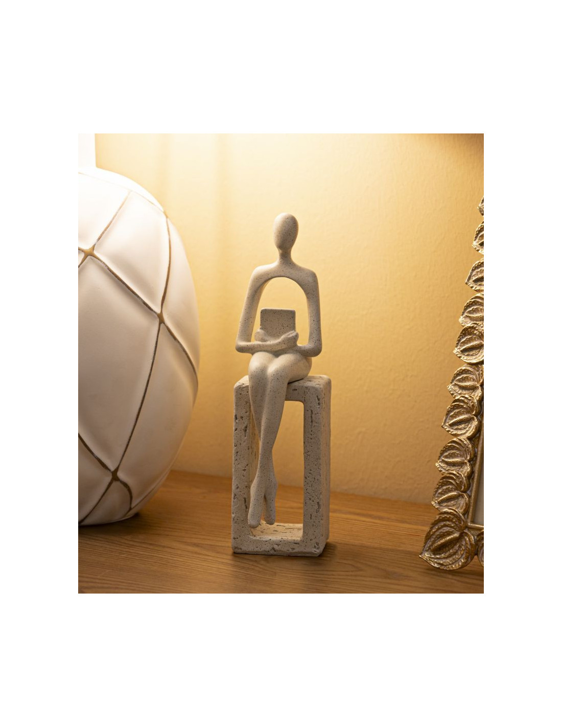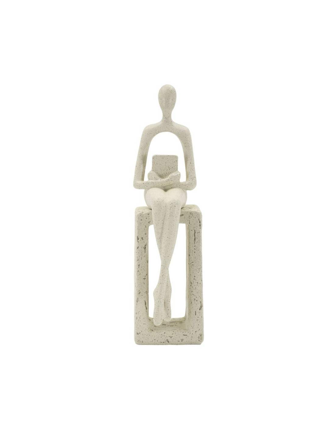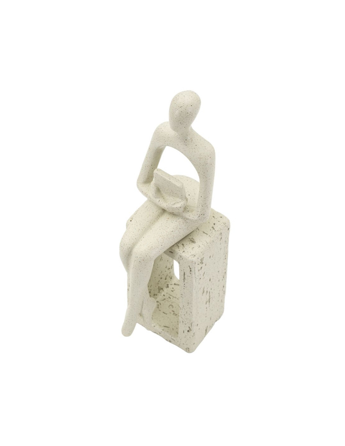 Statuette déco abstraite Personnage avec livre Hauteur 24 cm Résine Blanc crème Stons