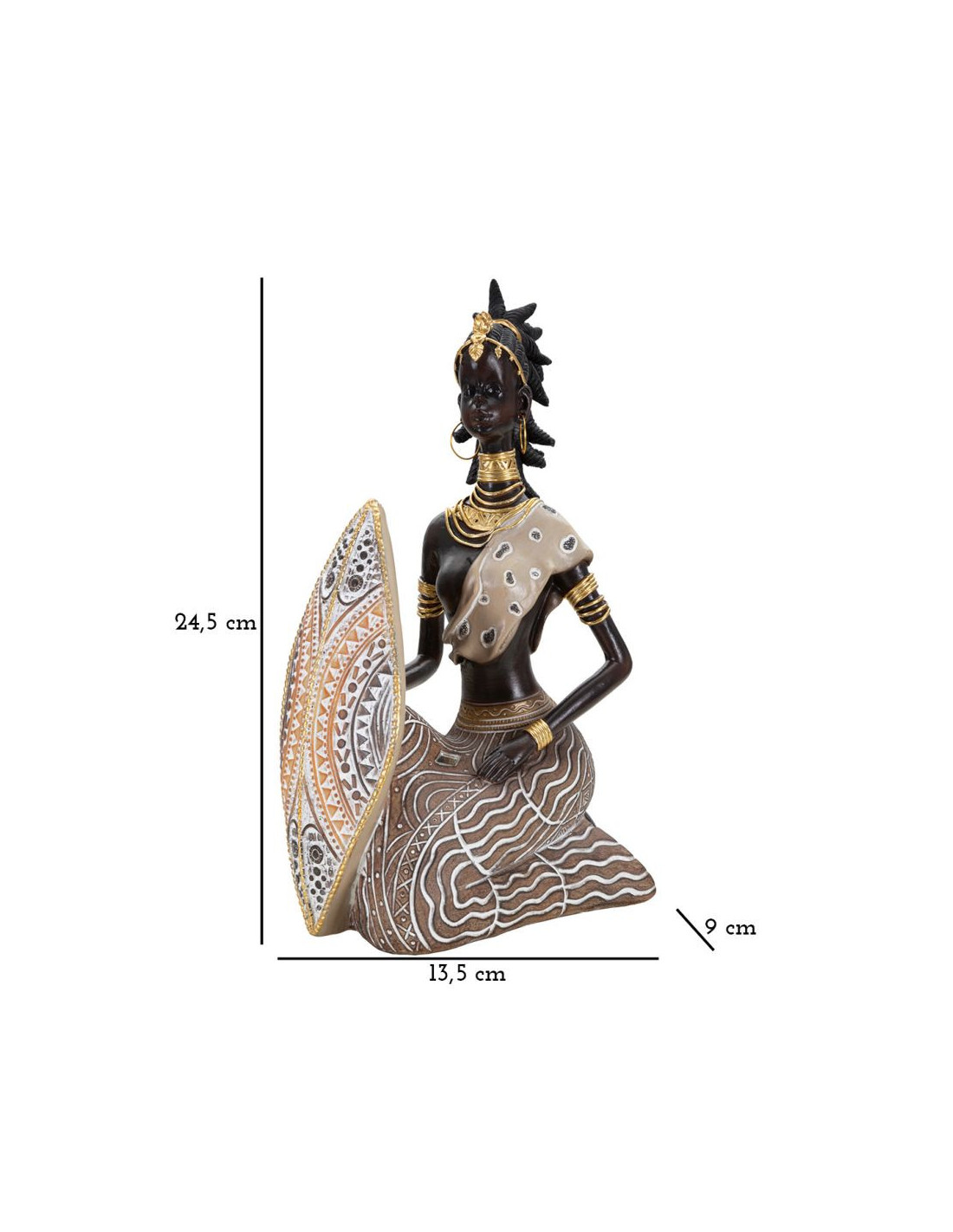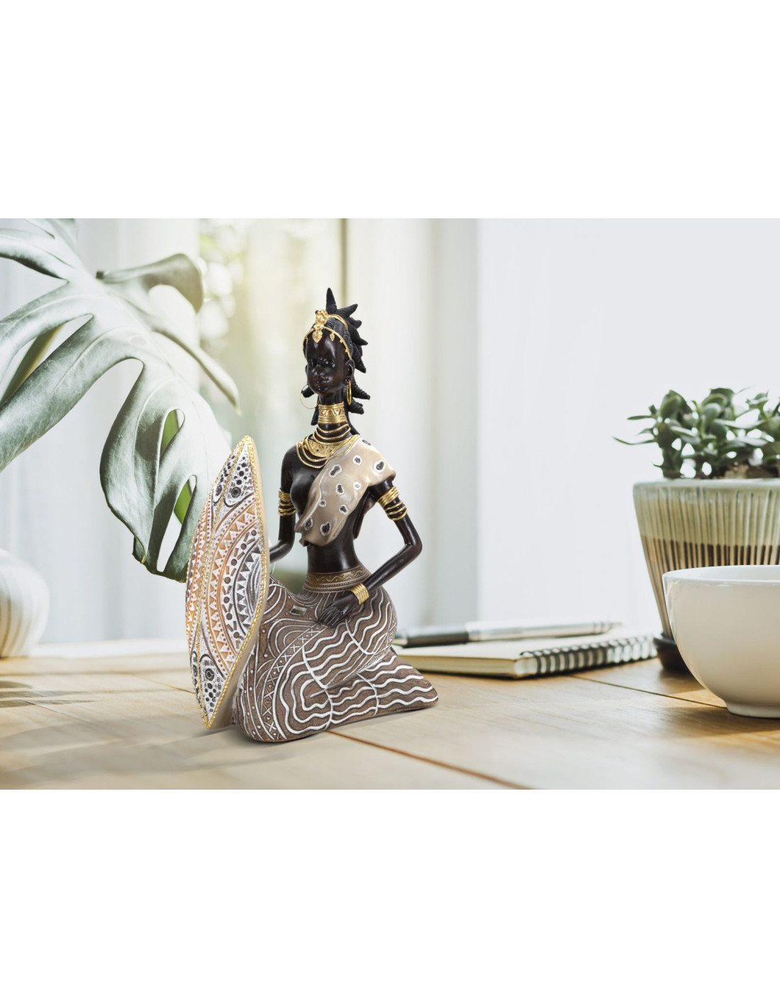 Statuette déco africaine Femme Maasaï Hauteur 24 cm en Résine Beige Marron Tribal