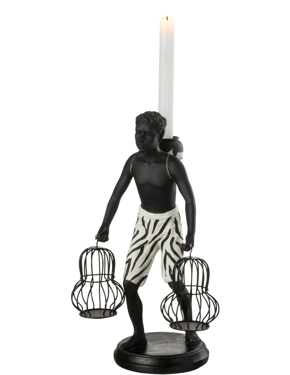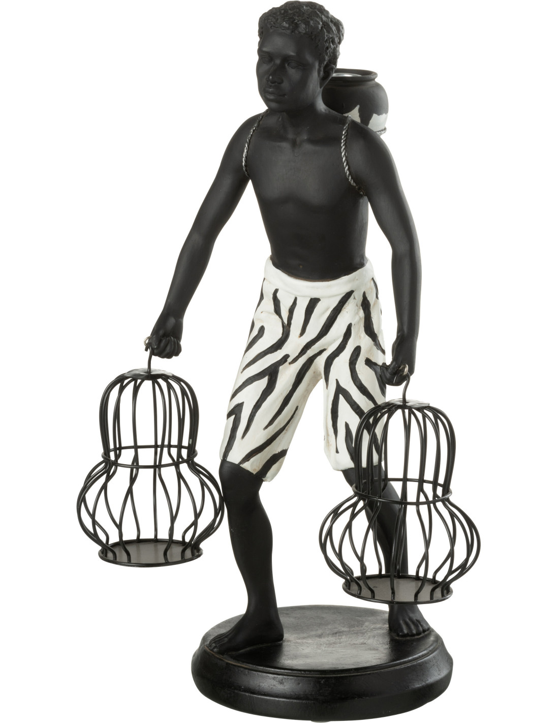 Statuette déco africaine Garçon avec paniers Hauteur 31 cm en Résine Blanc Noir Hylor