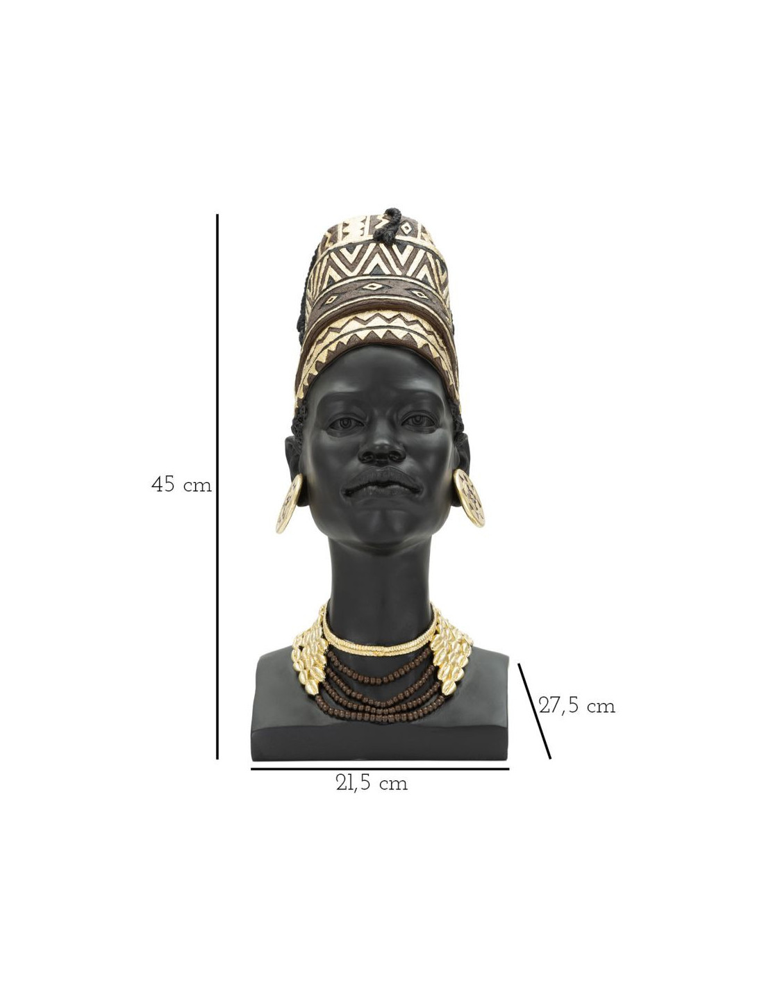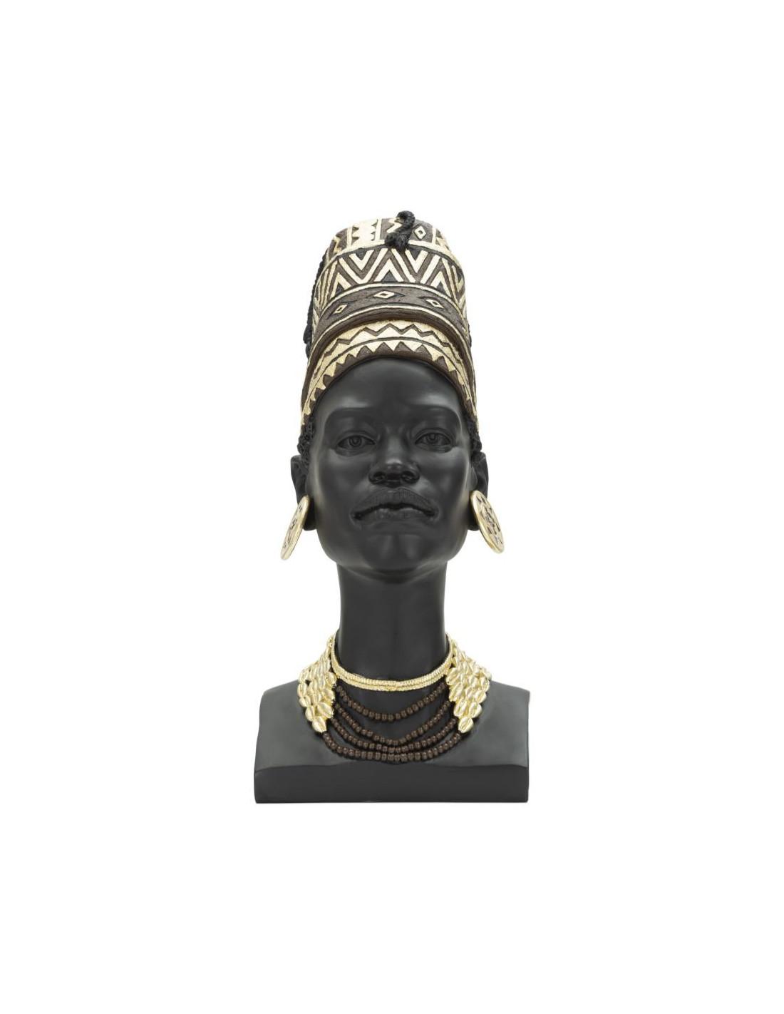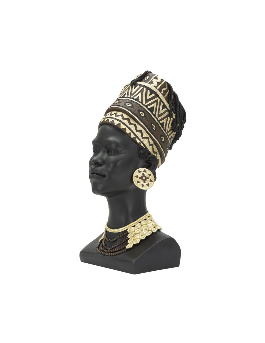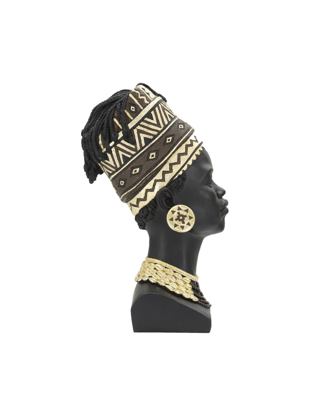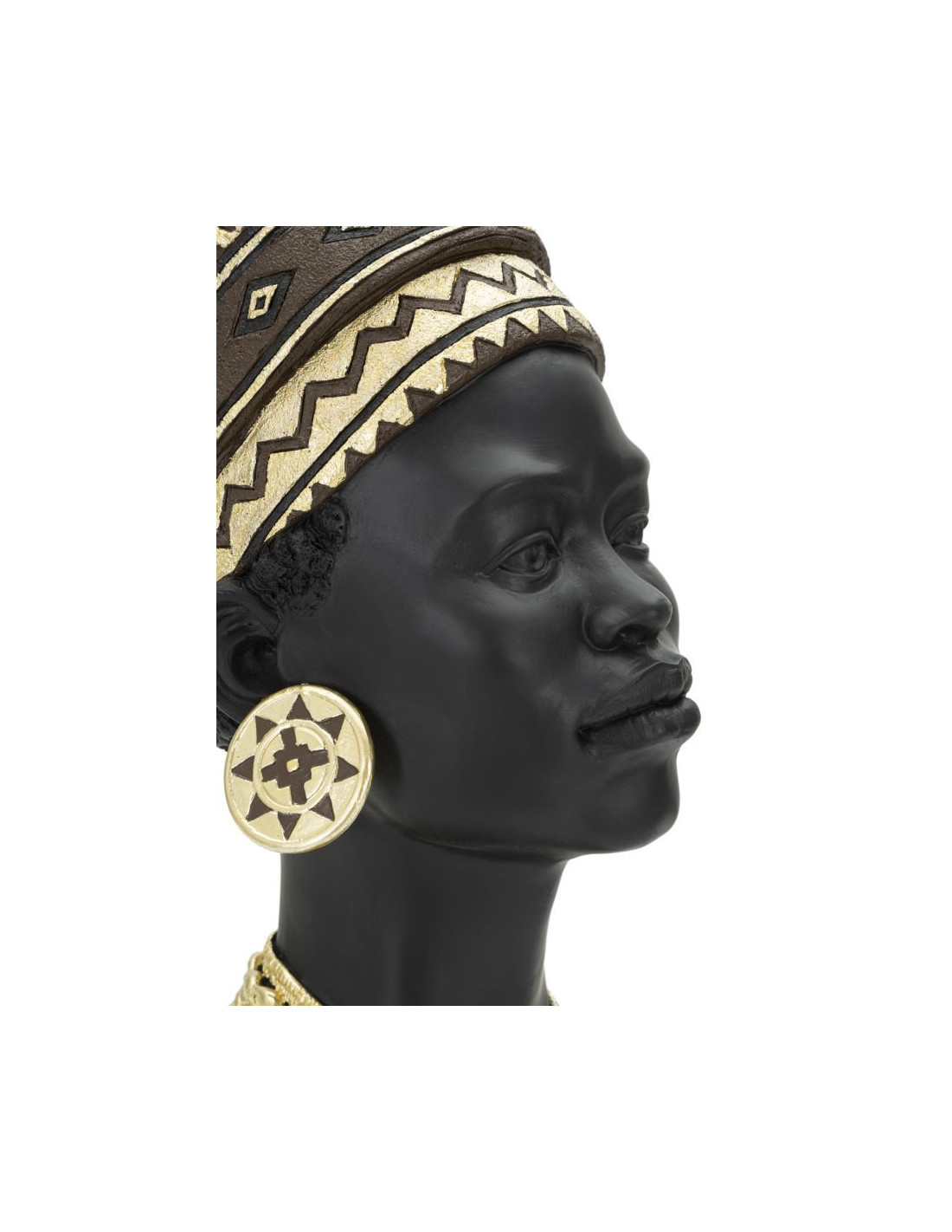 Statuette déco Buste Femme Maasaï Hauteur 45 cm en Résine Noir Doré Zelya