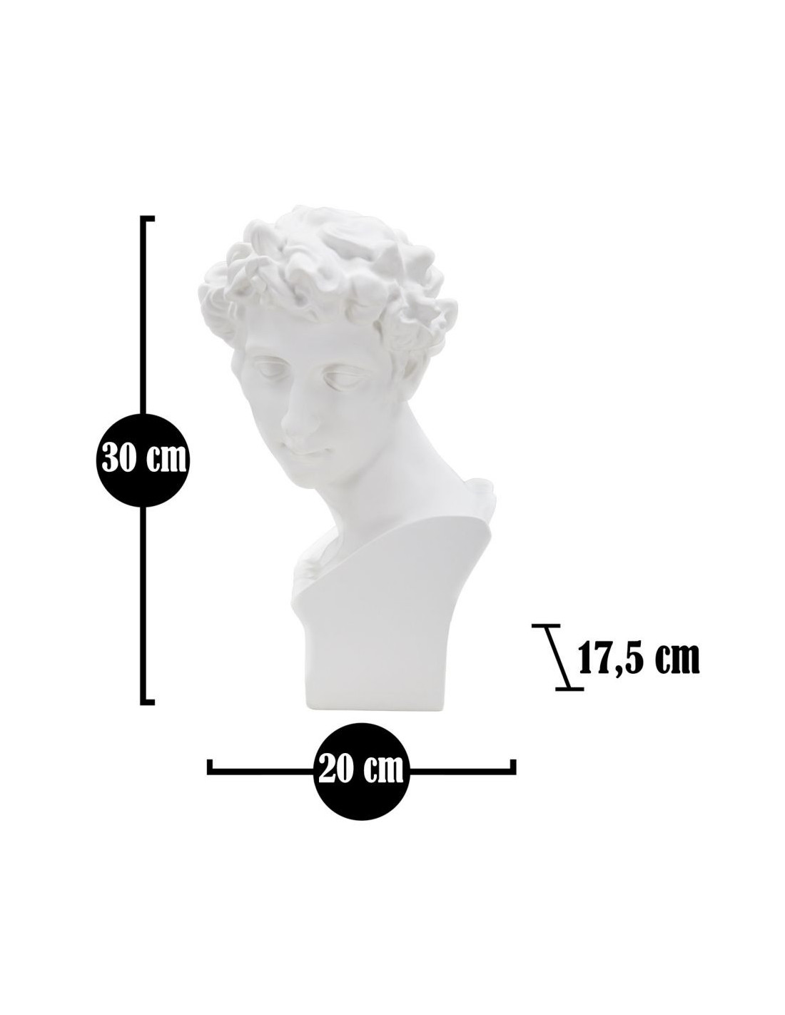Statuette déco Buste Homme antique Hauteur 30 cm en Résine Blanc Rylae