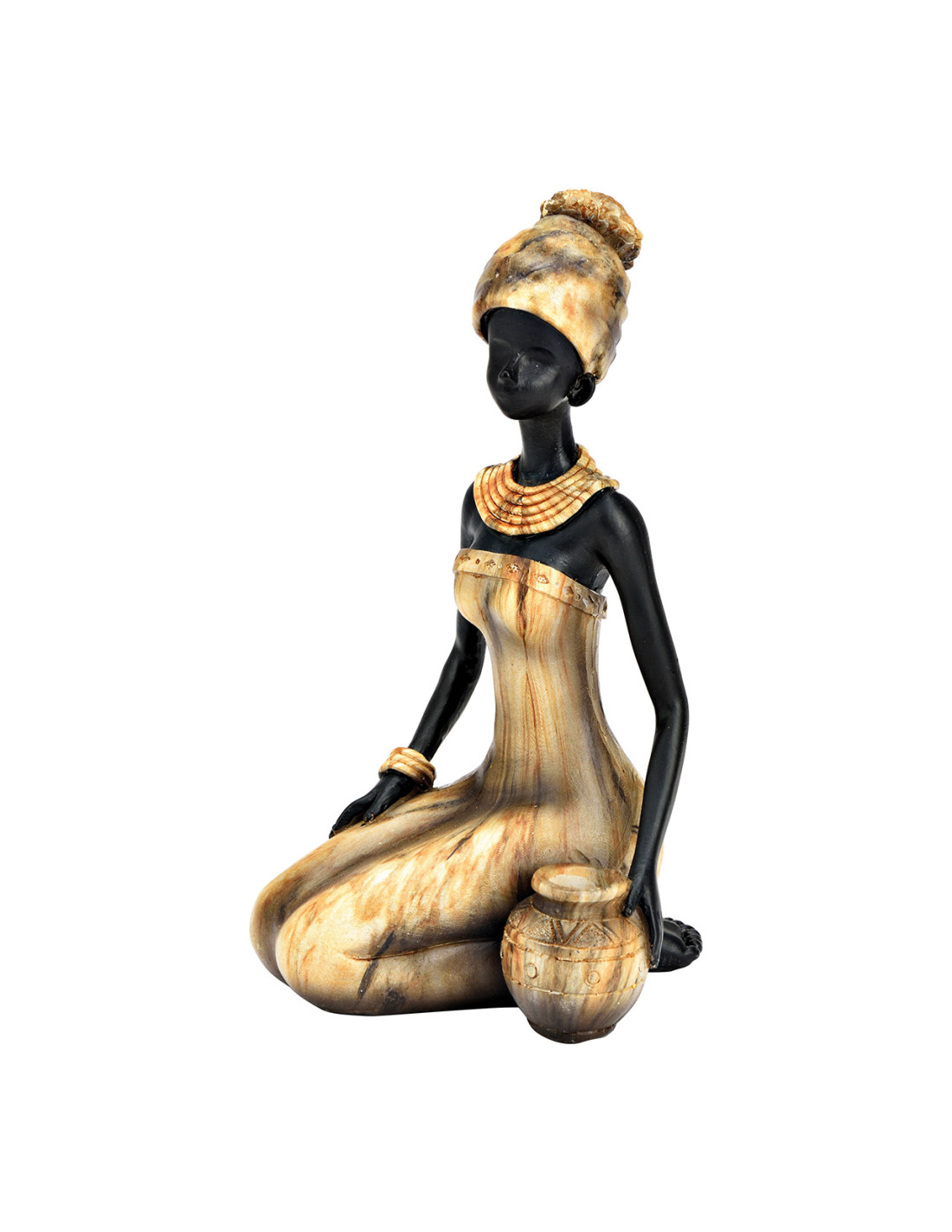 Statuette déco Femme africaine assise Hauteur 18 cm Résine Noir Beige Amara - 1