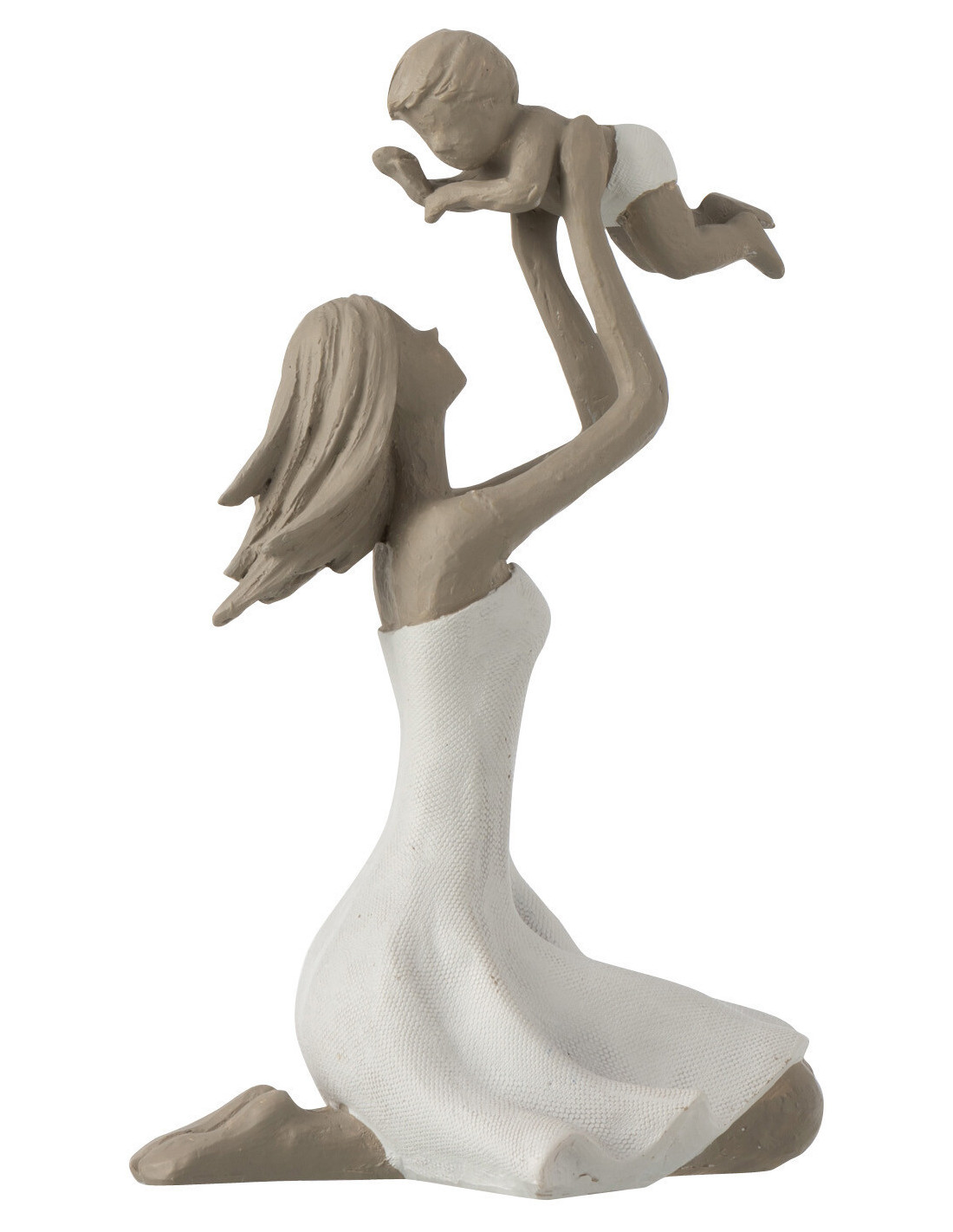 Statuette déco Femme avec bébé Hauteur 18 cm en Résine Blanc Taupe Tresna