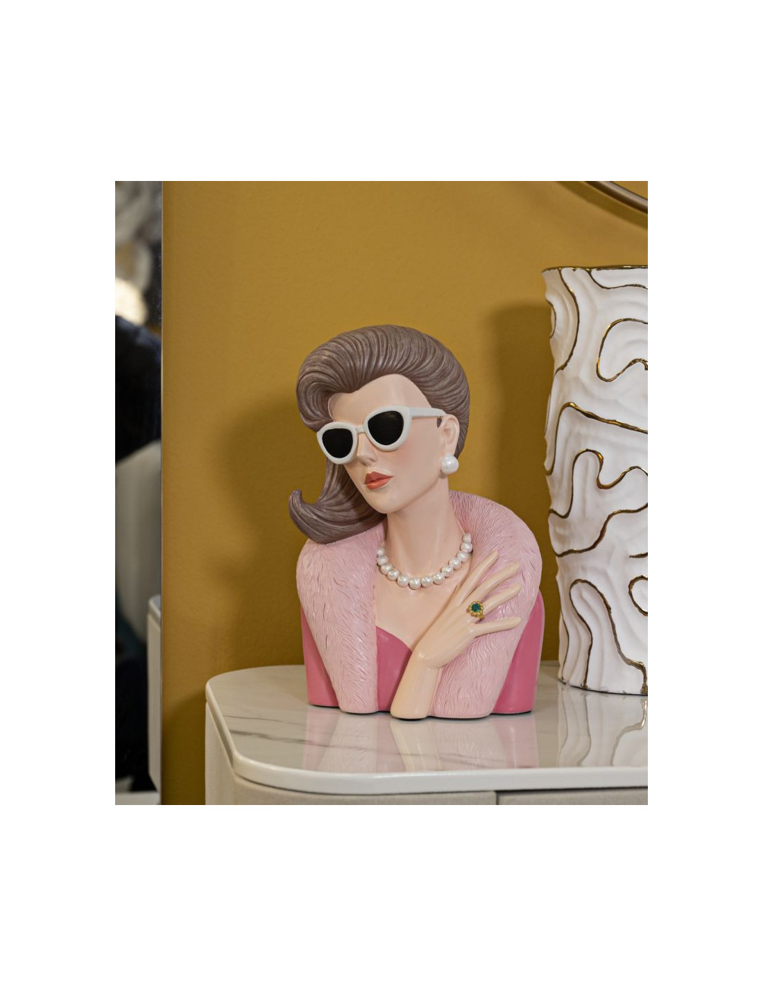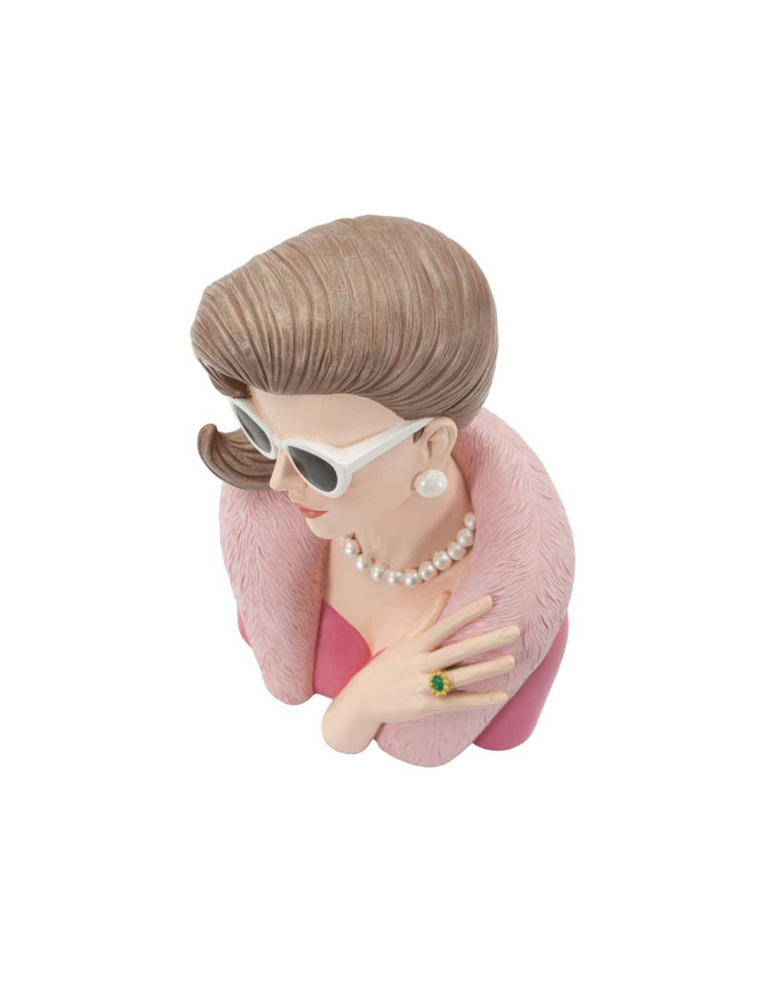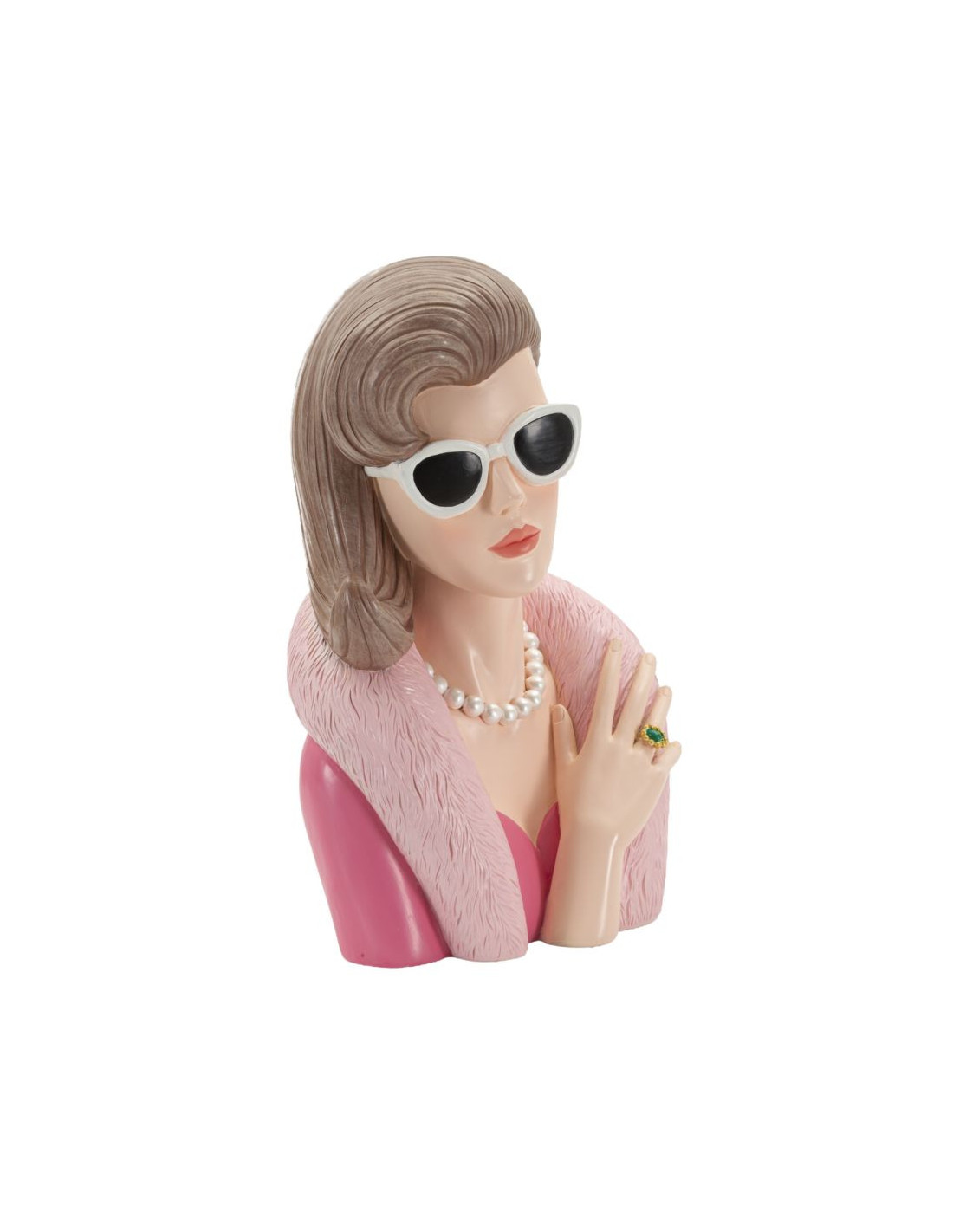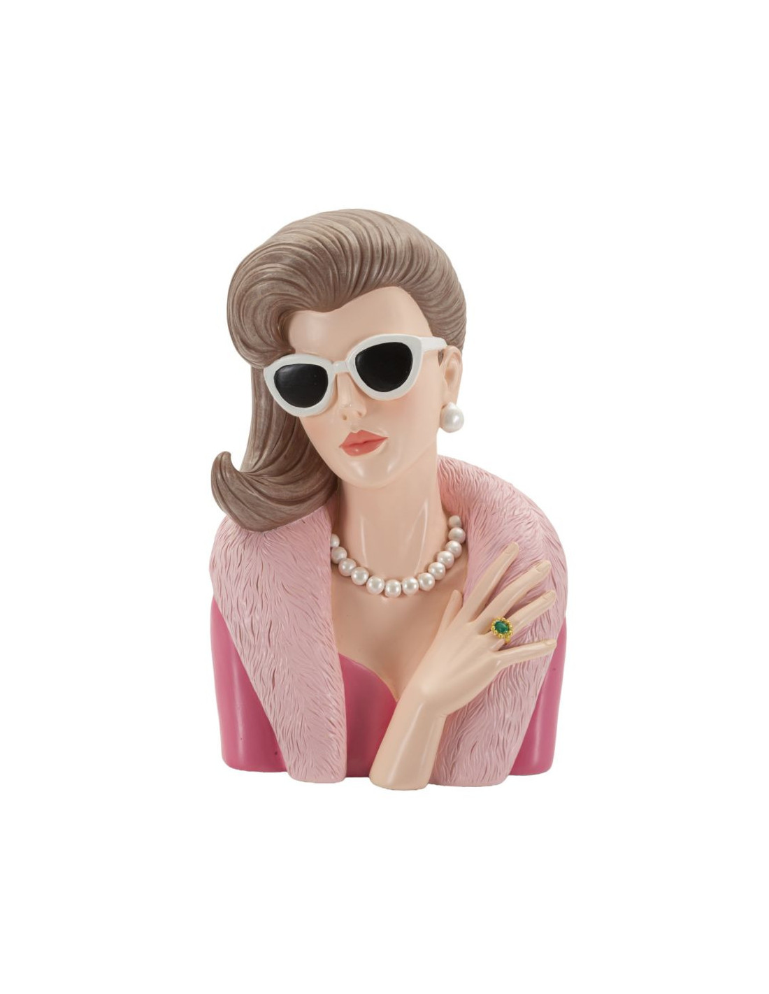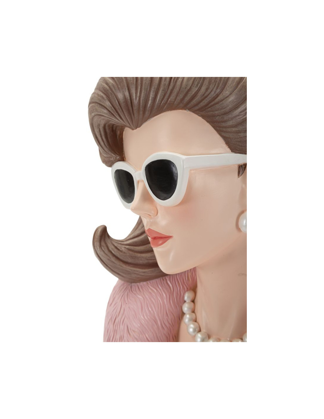 Statuette déco Femme manteau & lunettes Hauteur 28 cm Résine Rose Beige Paris