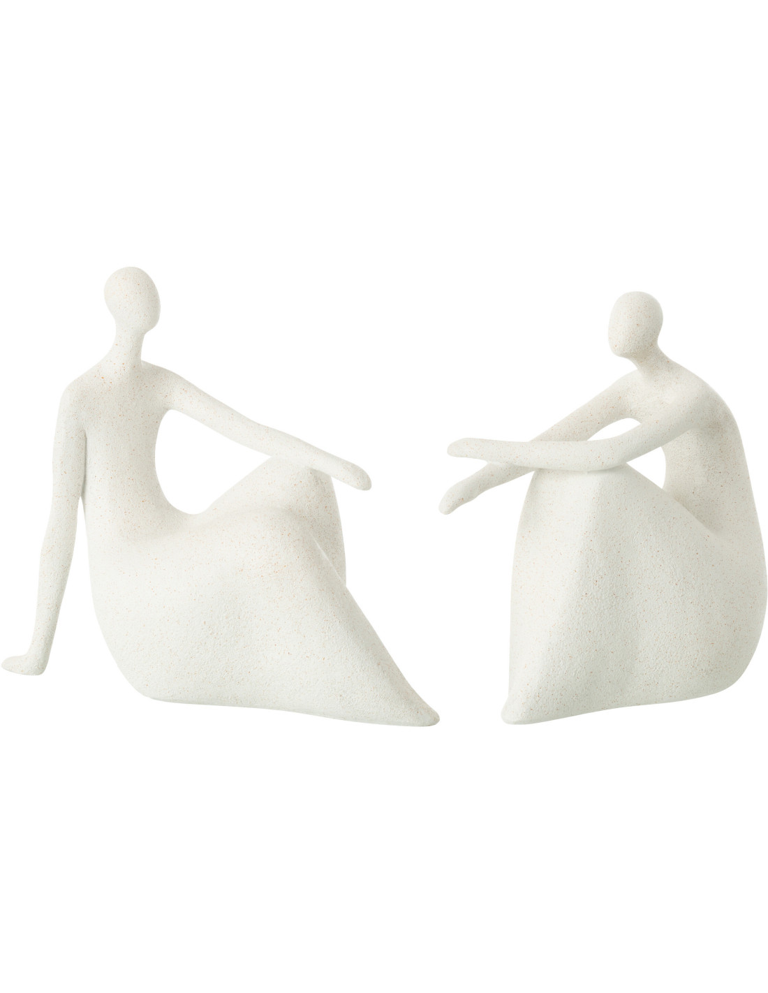 Statuette déco Femmes abstraites assises Hauteur 22 cm en Résine Blanc Mat Rizu (Lot de 2)