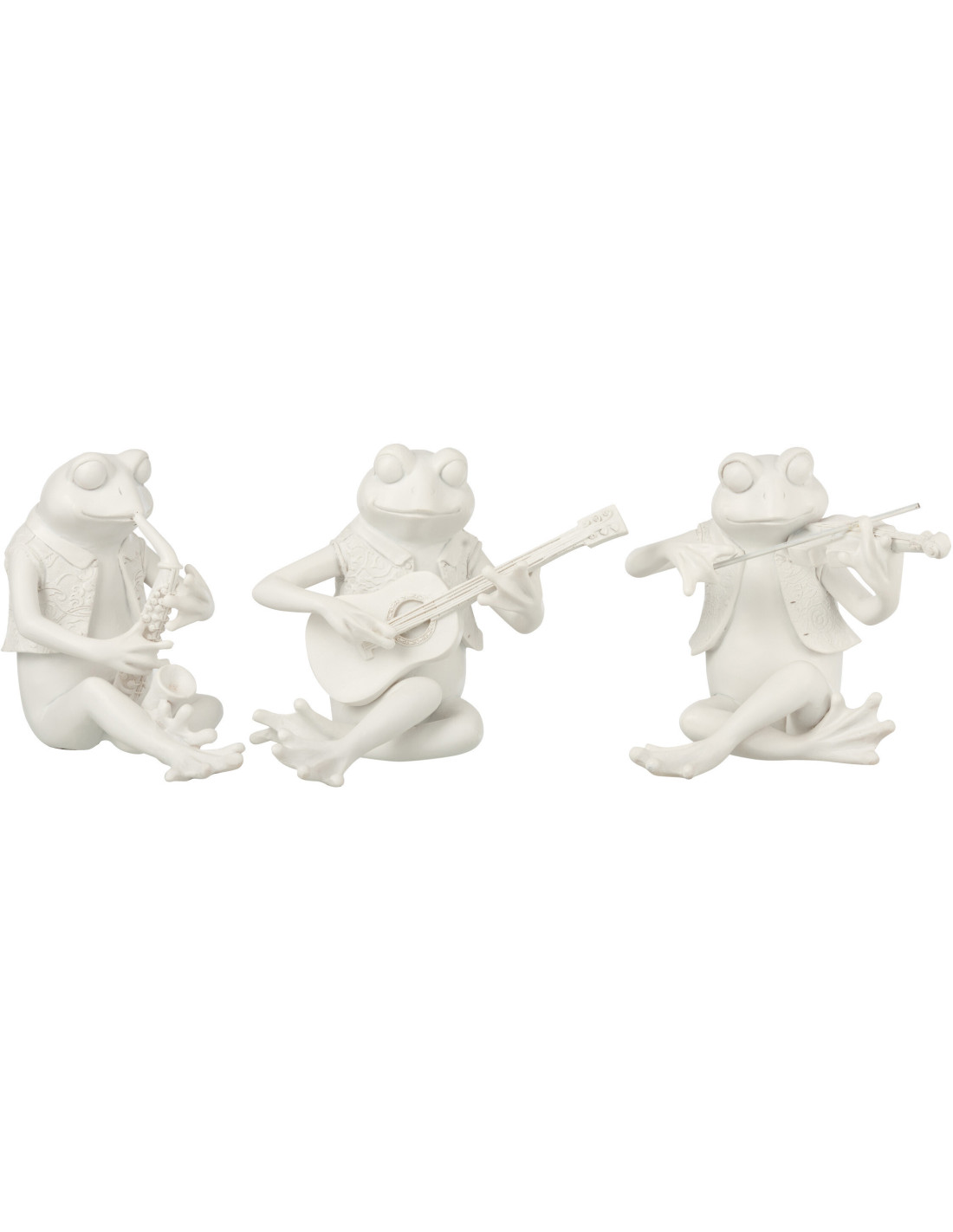 Statuette déco Grenouilles musiciennes Hauteur 15 cm en Résine Blanc Wylia