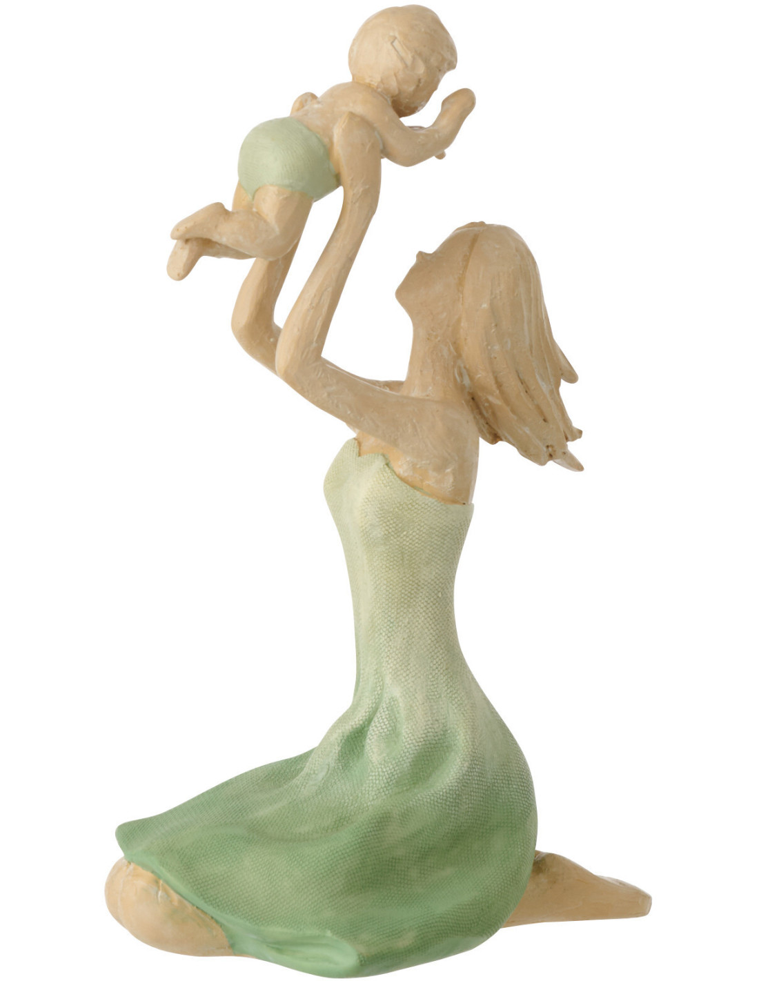 Statuette déco Maman & Enfant H 19 cm Résine Vert Beige Printania