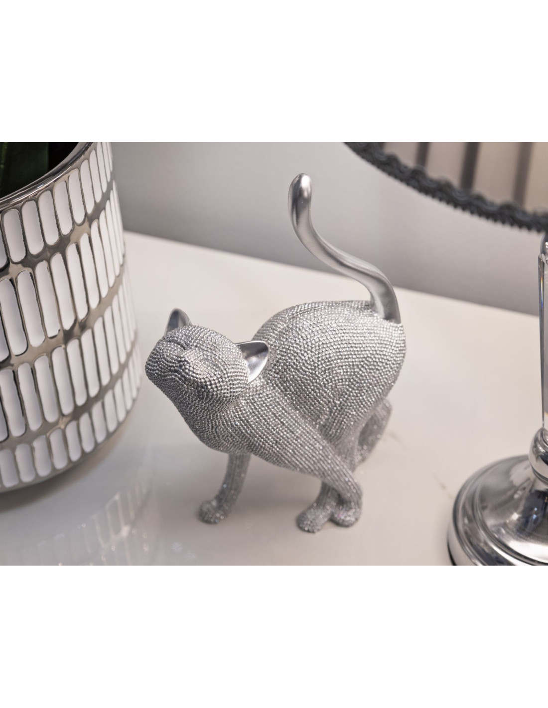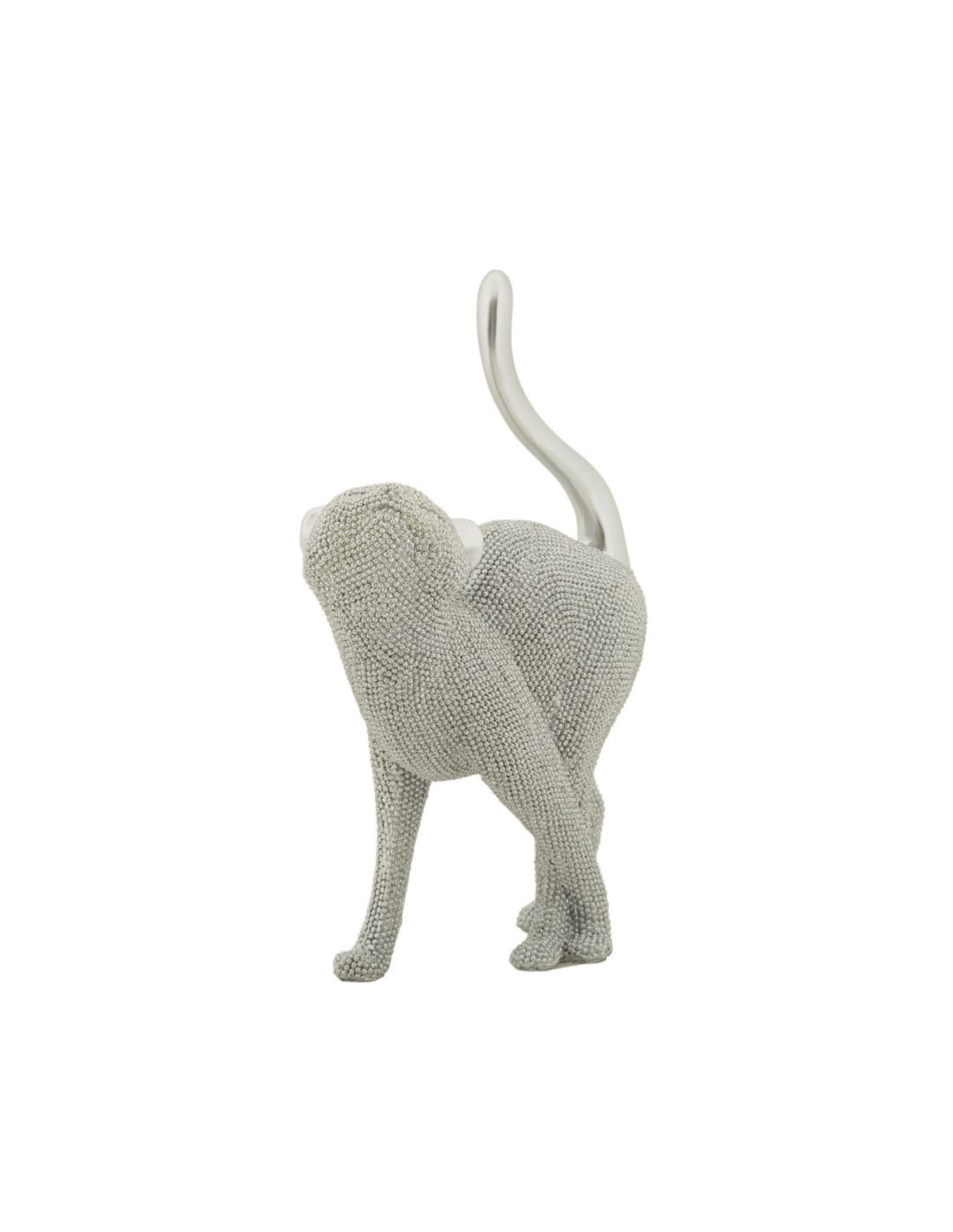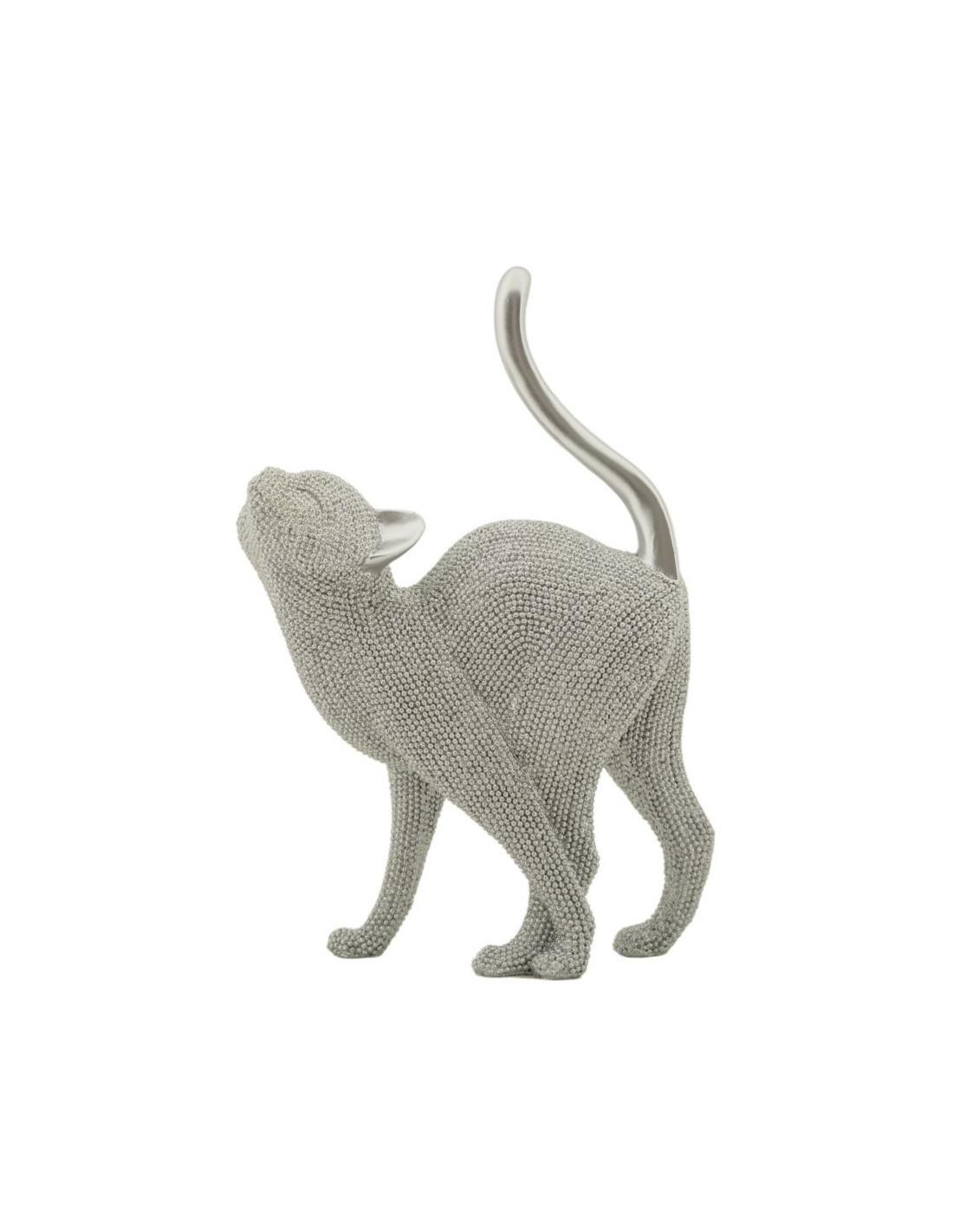 Statuette déco moderne Chat en Résine Argenté Brillant Sparky