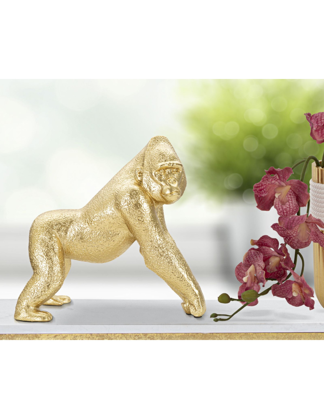 Statuette déco moderne Gorille 24 cm en Résine Doré Zaryl