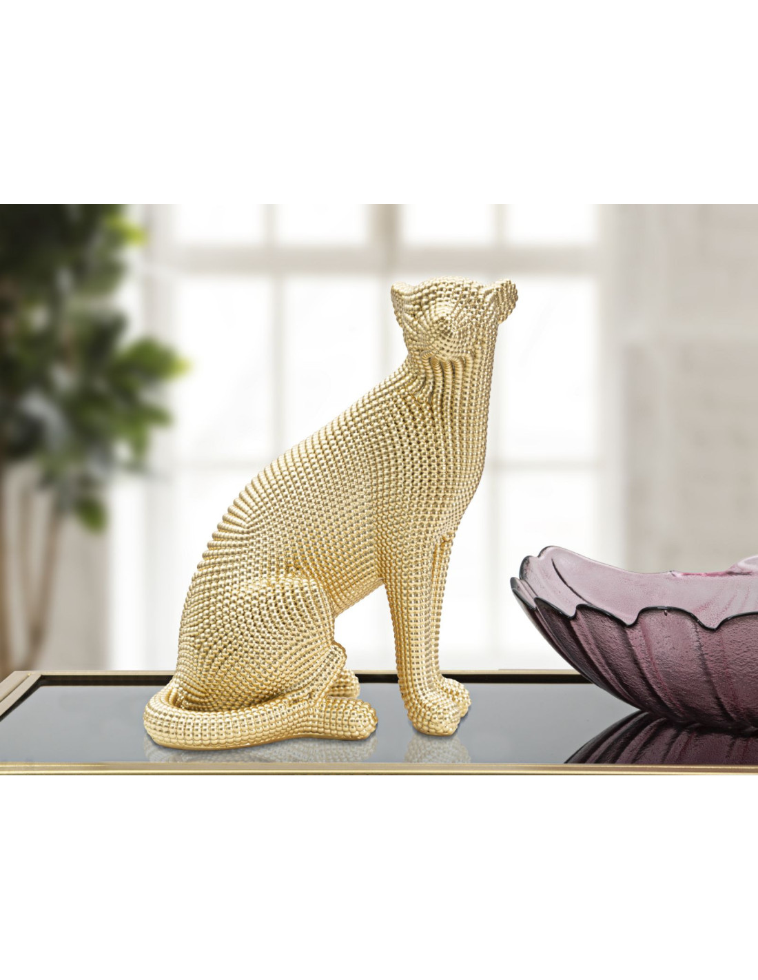 Statuette déco moderne Léopard assis Hauteur 29 cm en Résine Doré Alira