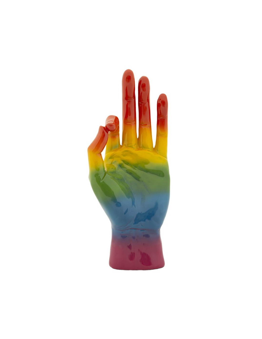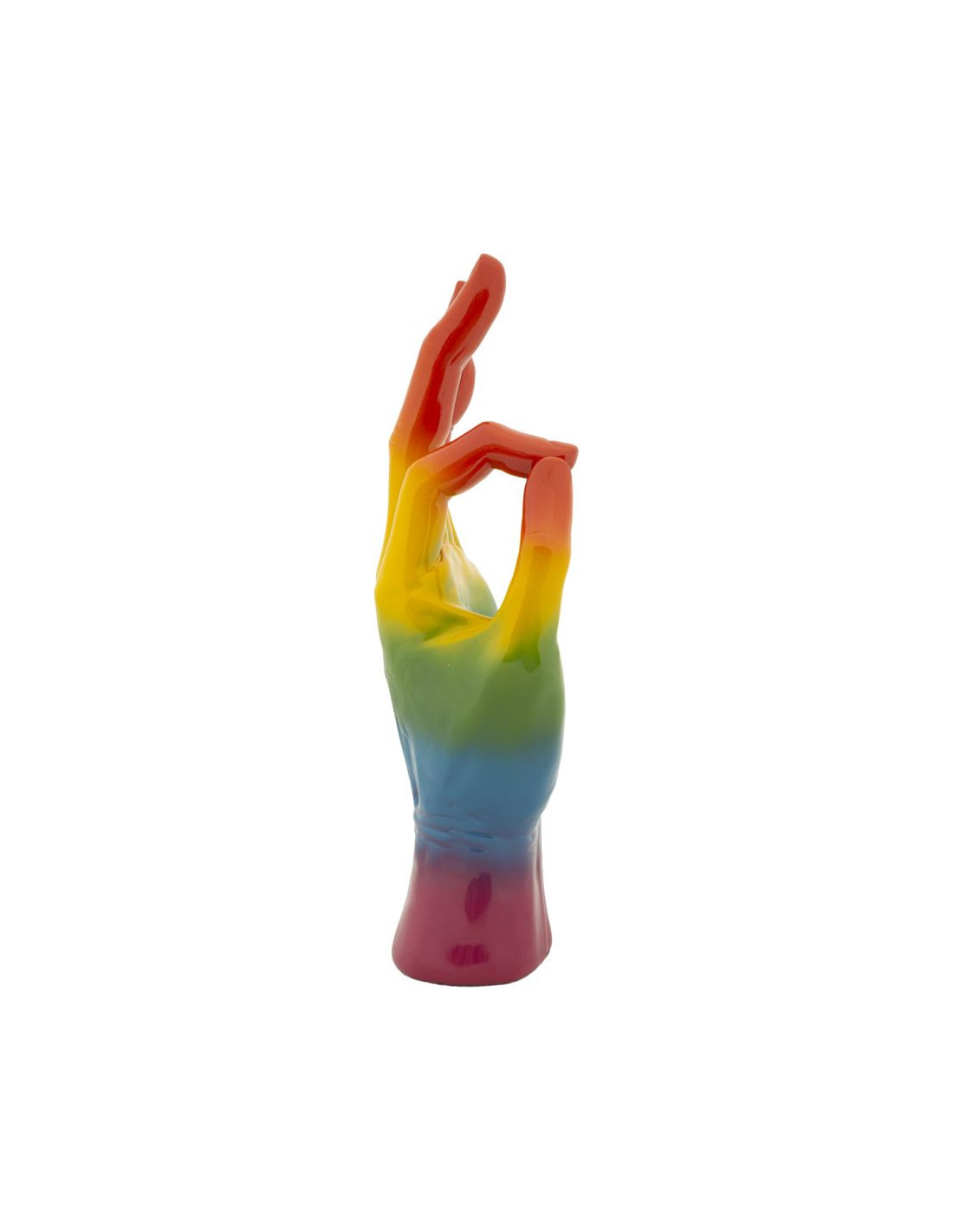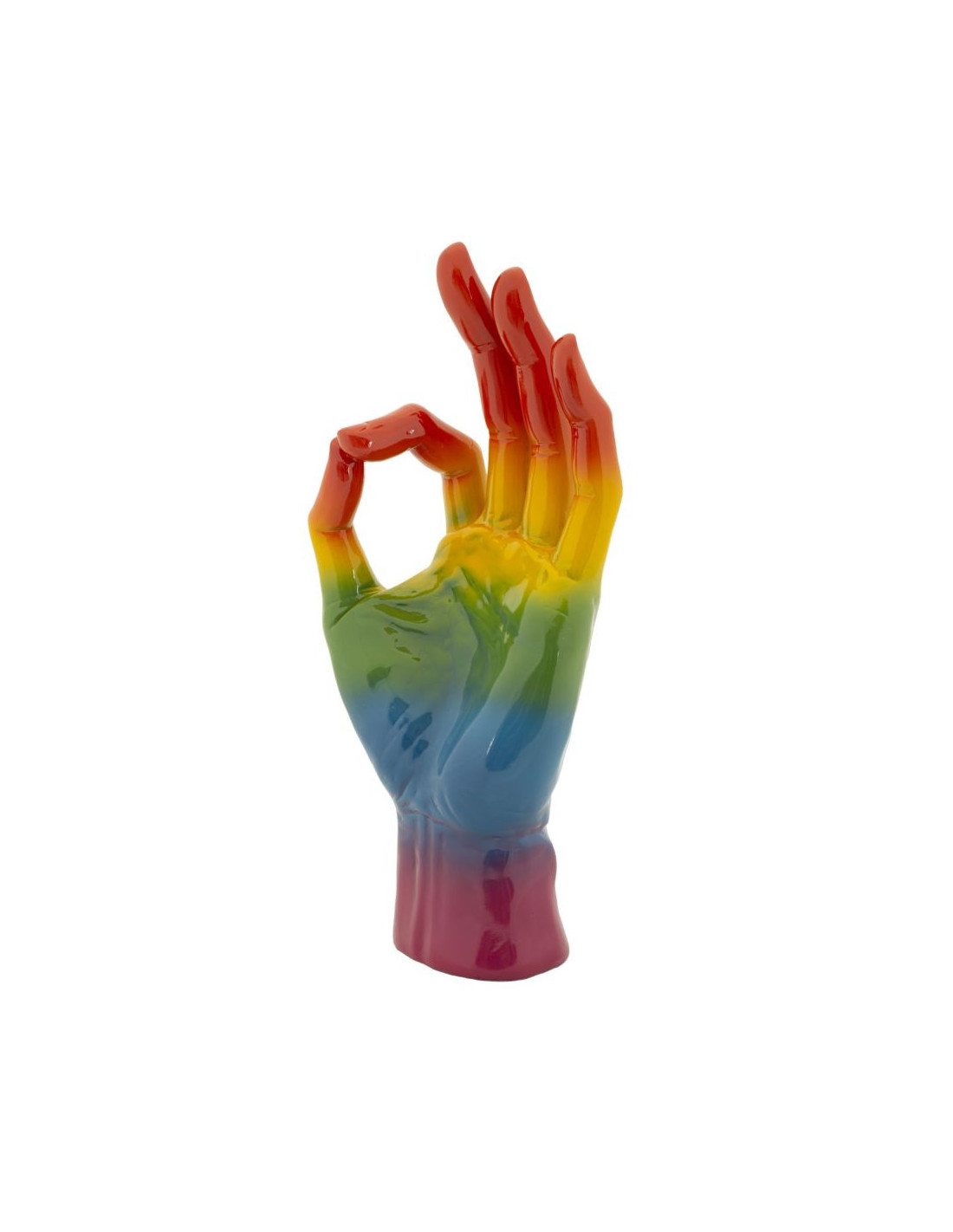 Statuette déco moderne Main Ok Hauteur 36 cm Résine Multicolore Motif Arc en ciel Rainbow