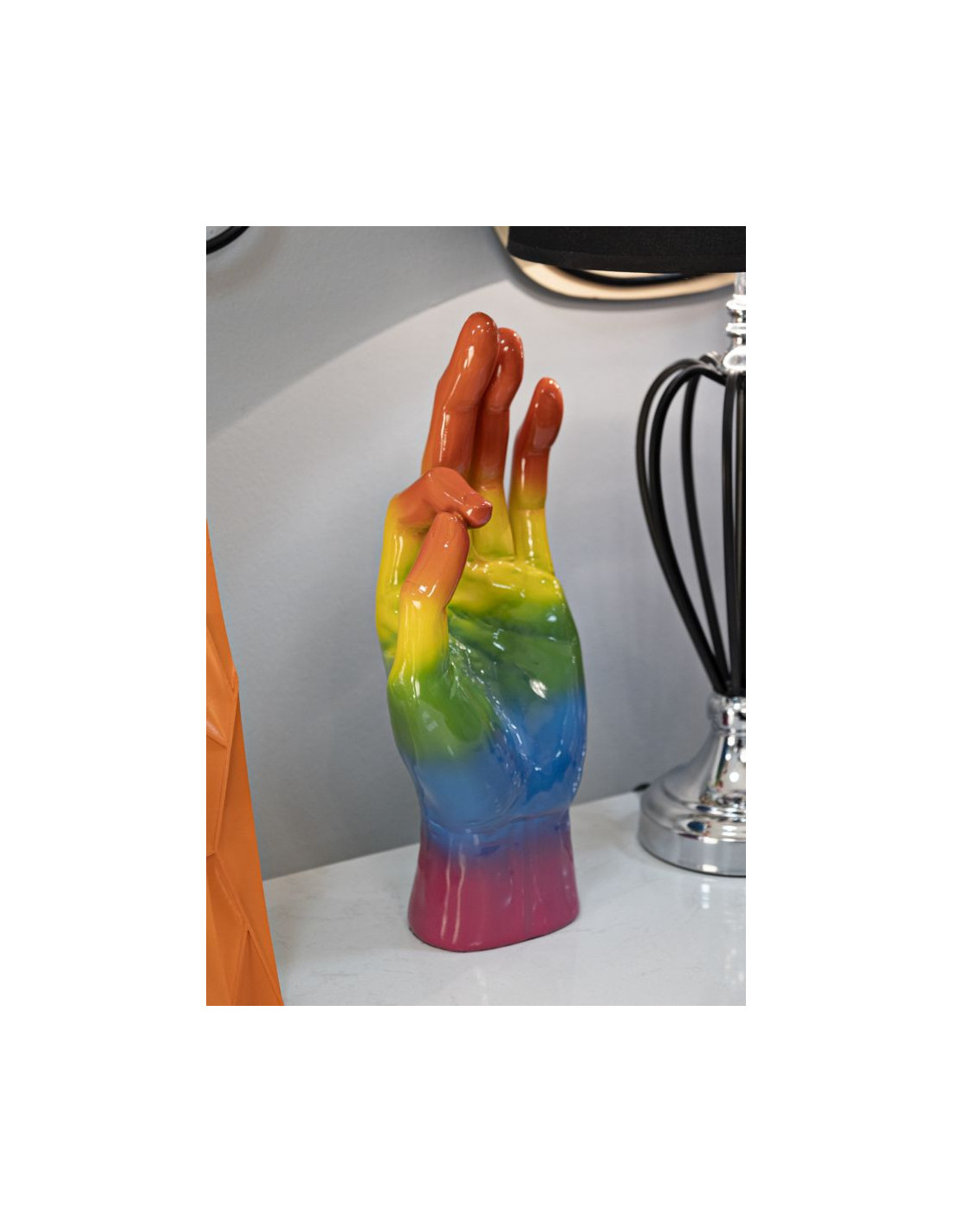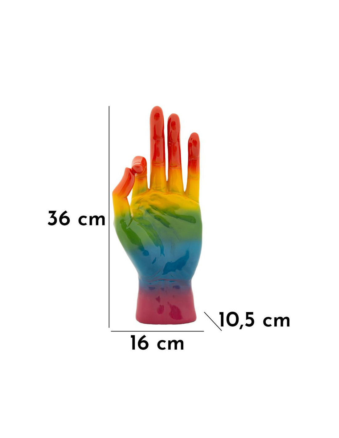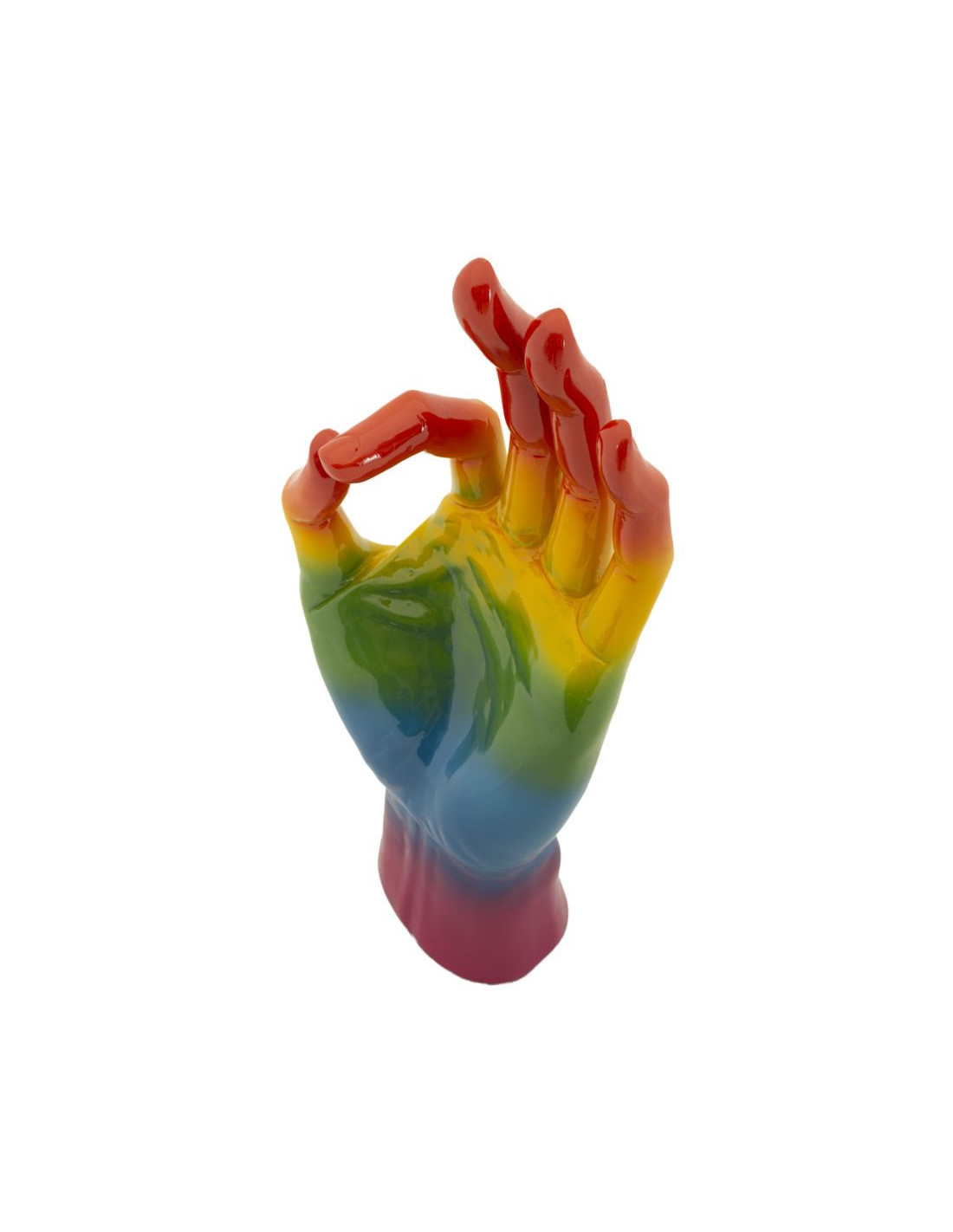 Statuette déco moderne Main Ok Hauteur 36 cm Résine Multicolore Motif Arc en ciel Rainbow