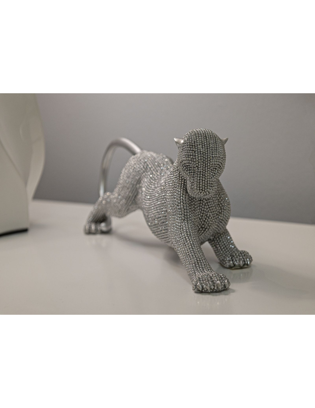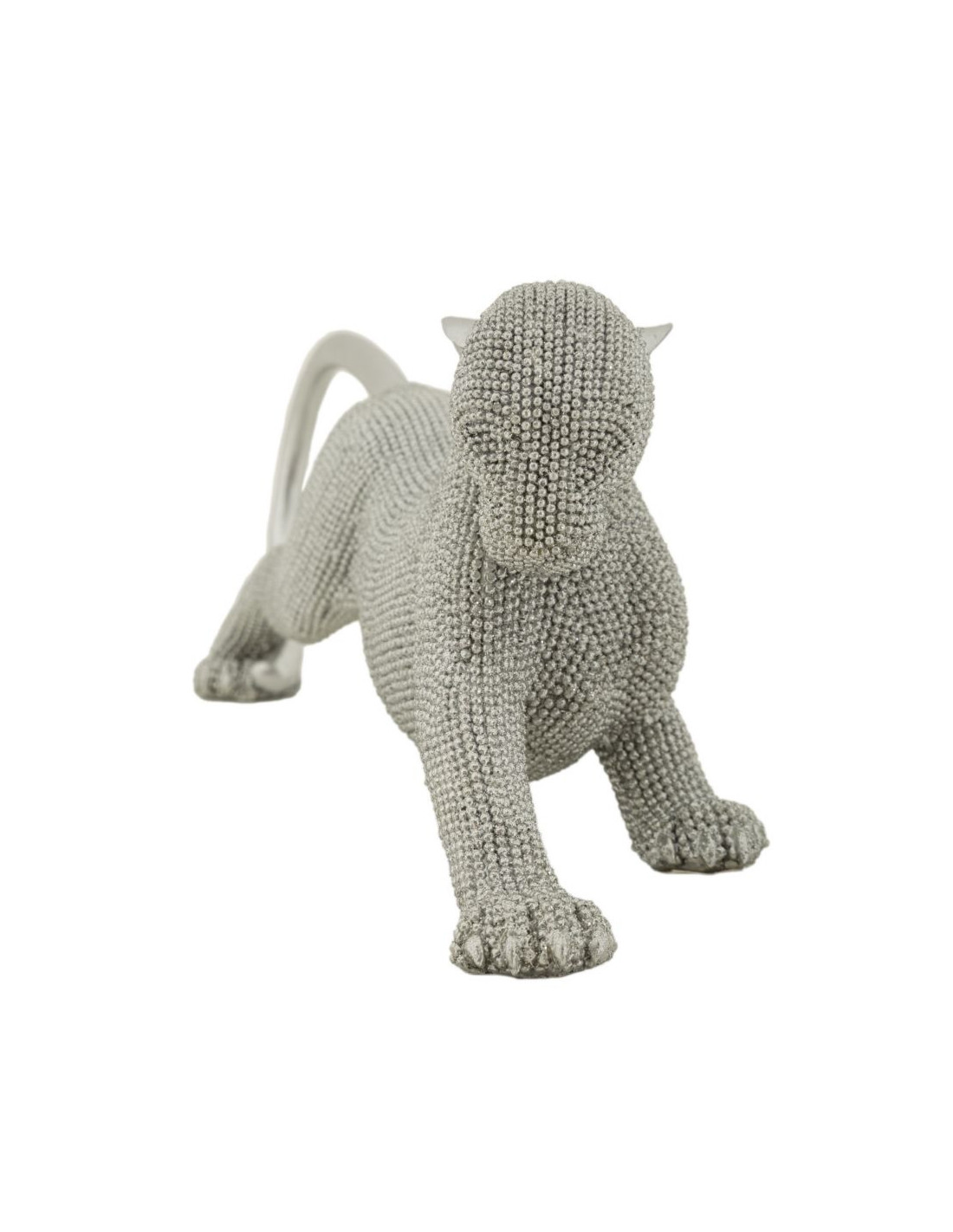 Statuette déco moderne Panthère en Résine Argenté Brillant Sparky