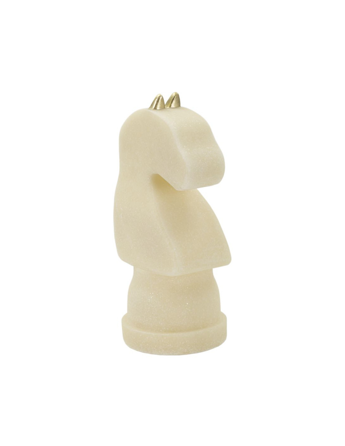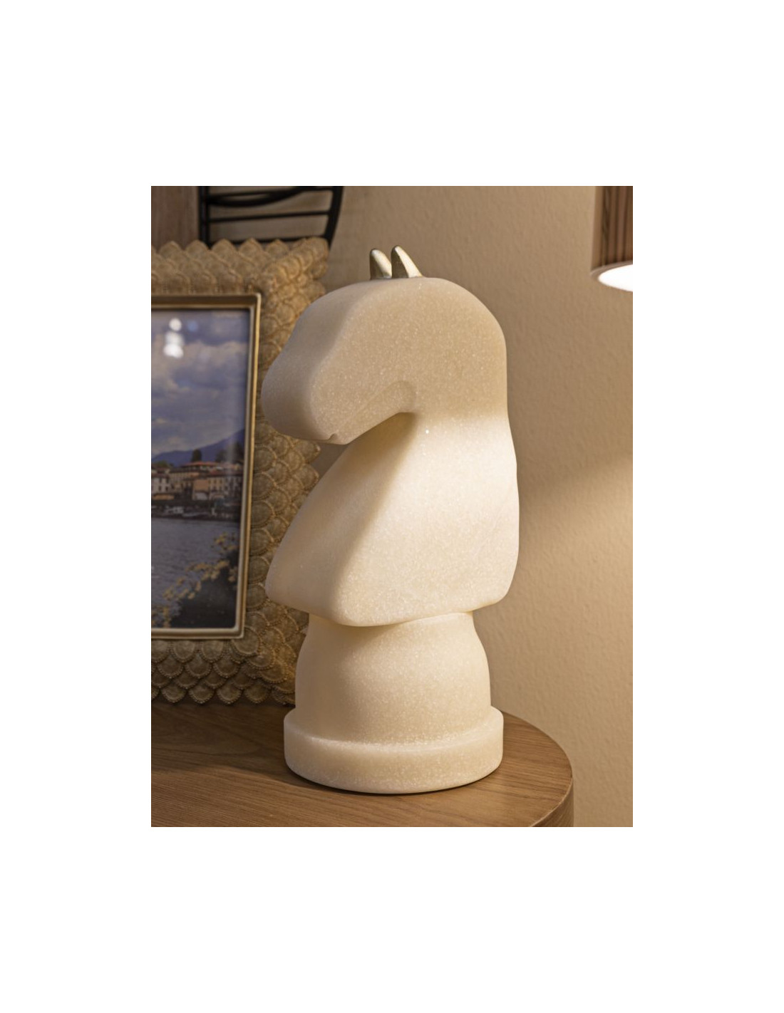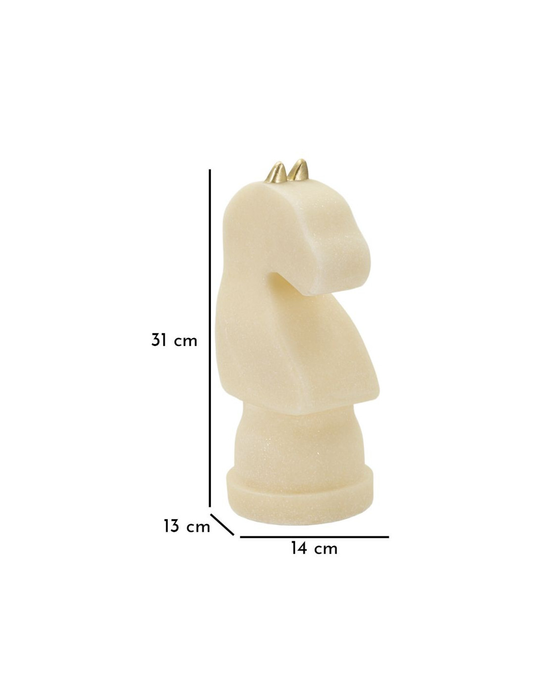 Statuette déco moderne Pièce d'échecs Cavalier Hauteur 31 cm en Résine Blanc Effet quartz Doré Scacchi