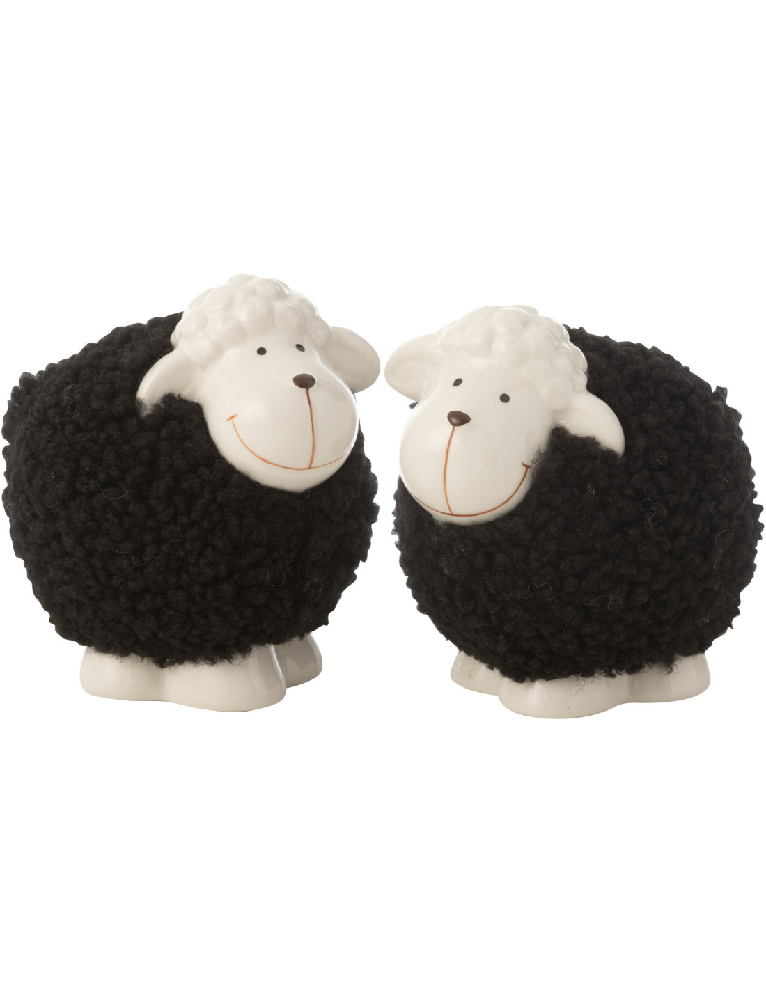 Statuette déco Moutons 12 cm en Porcelaine Blanc Noir Rolvan (Lot de 2)
