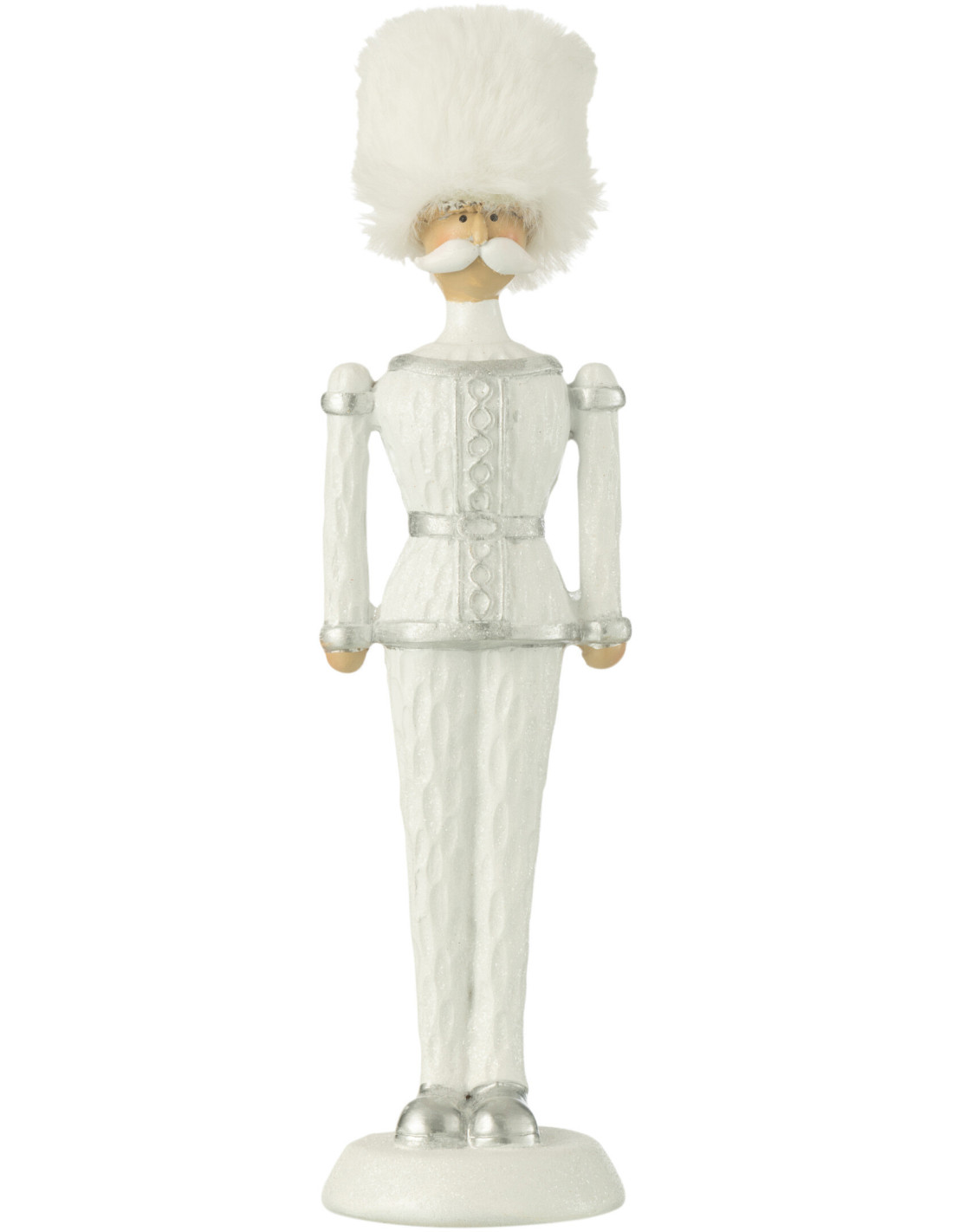 Statuette déco Noël Casse noisette Chapeau fourrure Hauteur 25 cm en Résine Blanc Zevran