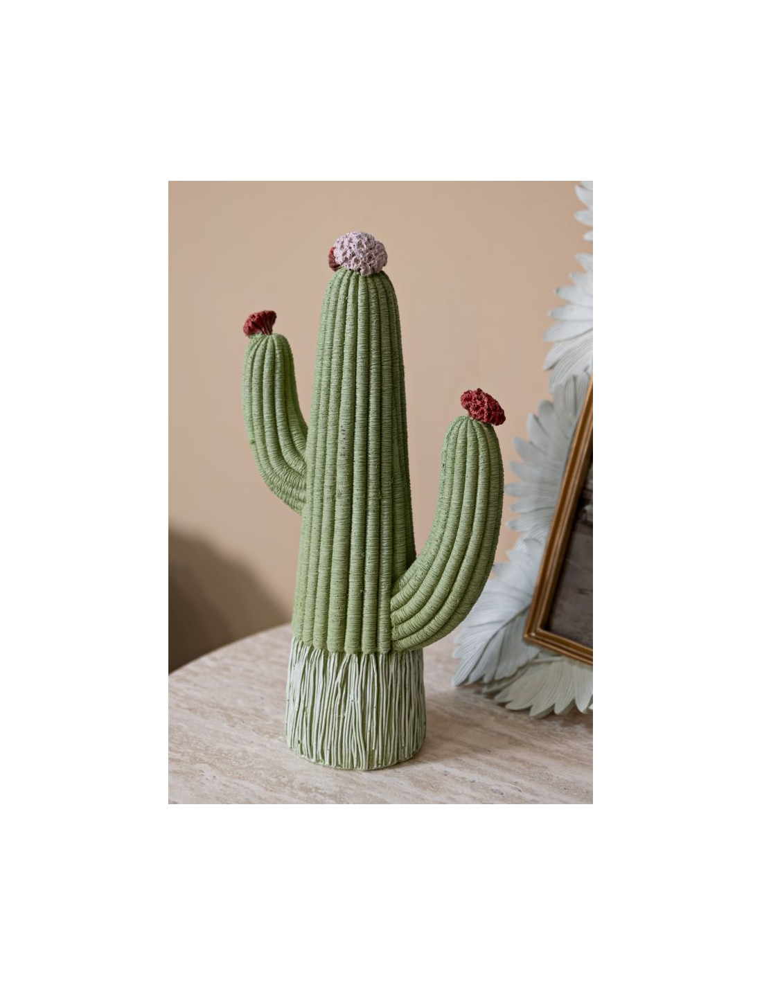 Statuette déco originale Cactus Hauteur 25 cm Résine Vert Cactacee