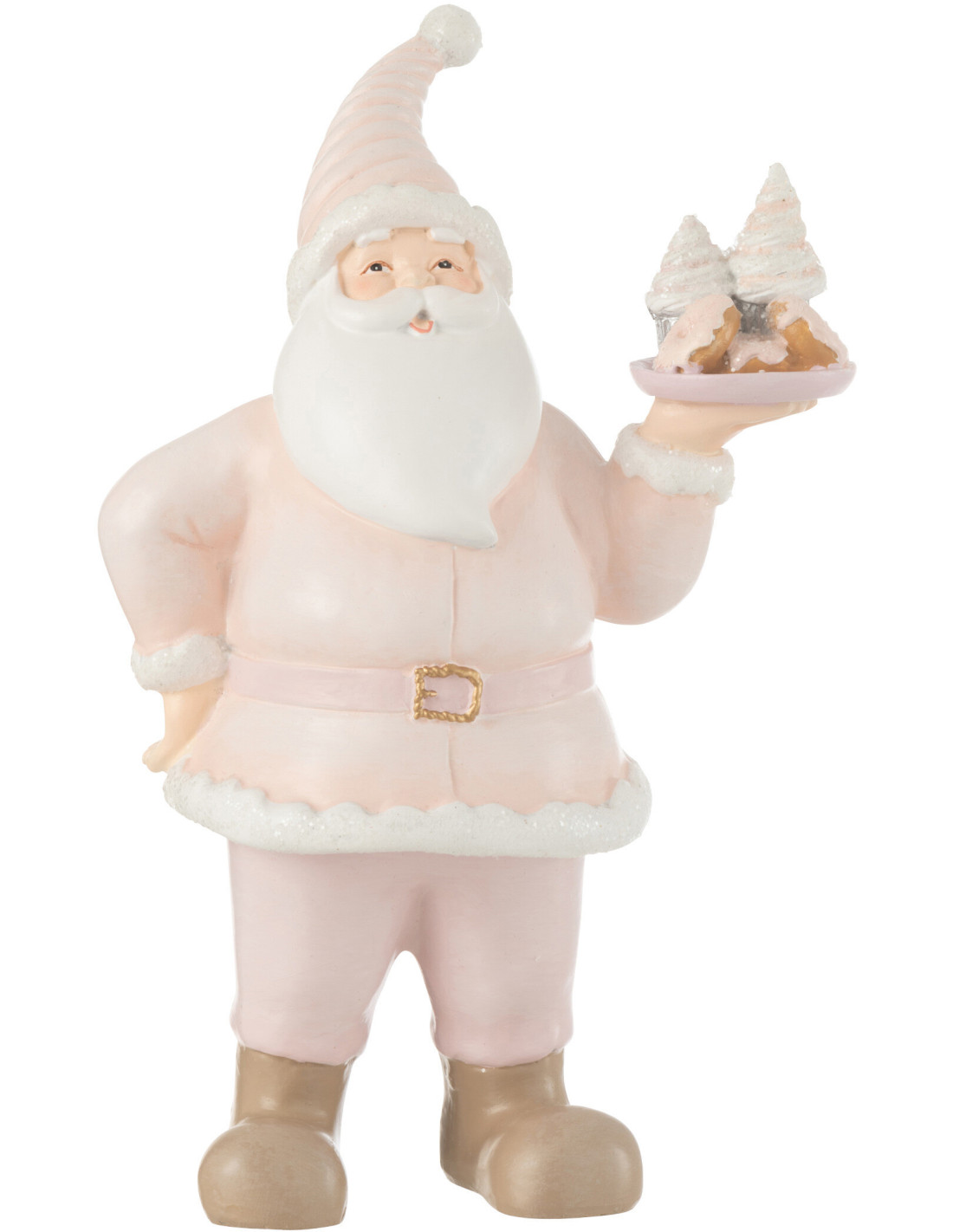 Statuette déco Père Noël gourmand Hauteur 24 cm en Résine Rose Blanc Mirin