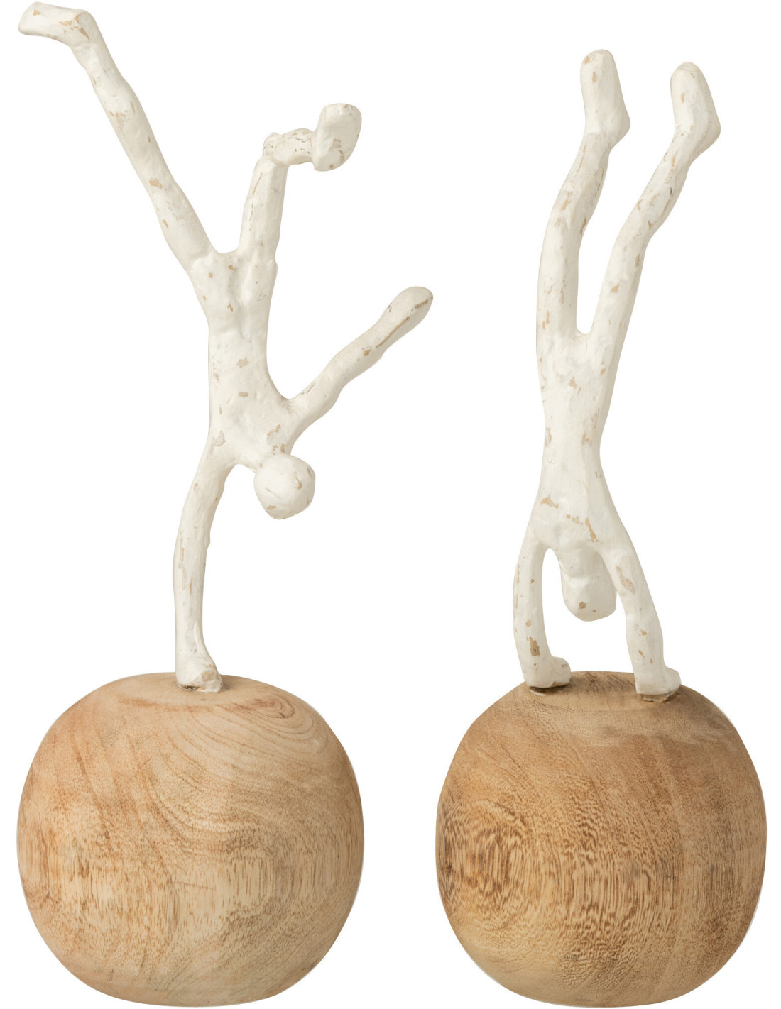 Statuette déco Personnage abstrait Acrobate Hauteur 30 cm en Bois de manguier Naturel Métal Blanc Heric (Lot de 2)