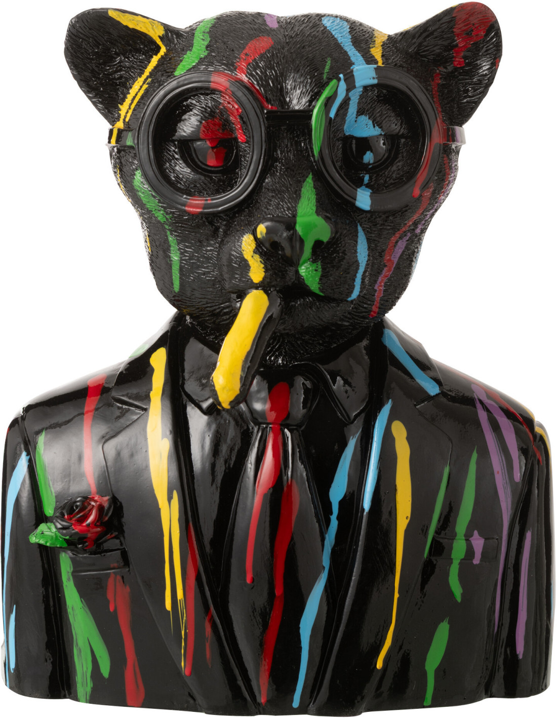Statuette déco Pop Buste Léopard H 31 cm Résine Noir Motif taches de peinture Navar
