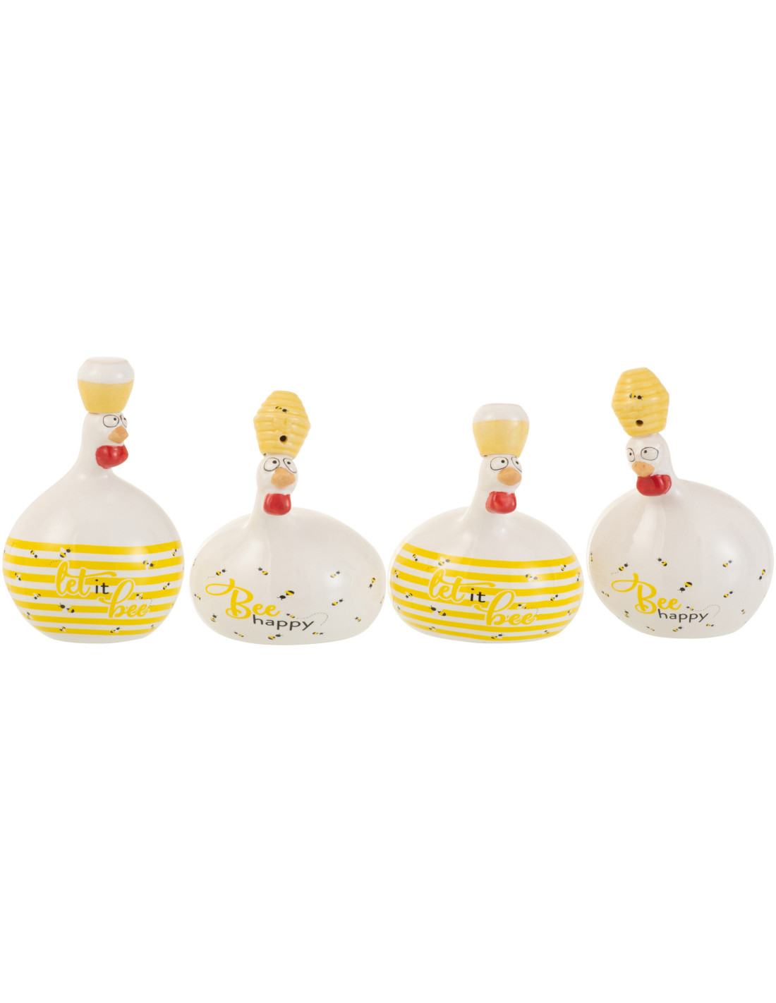 Statuette déco Poule Bee en Céramique Banc Jaune (Lot de 4)