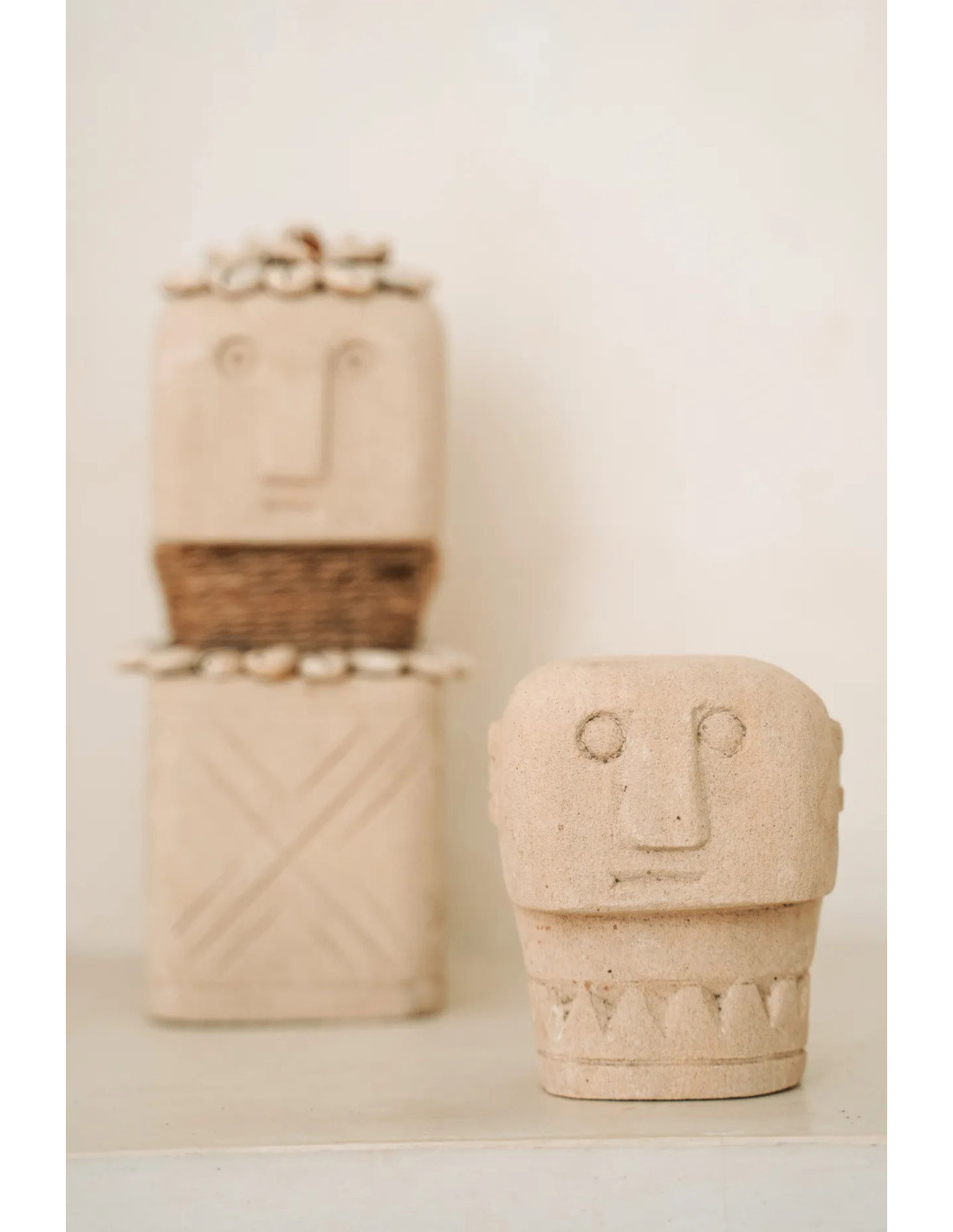 Statuette déco primitive wabi-sabi Hauteur 9 cm Grès Beige sable Vieilli The Sumba Stone
