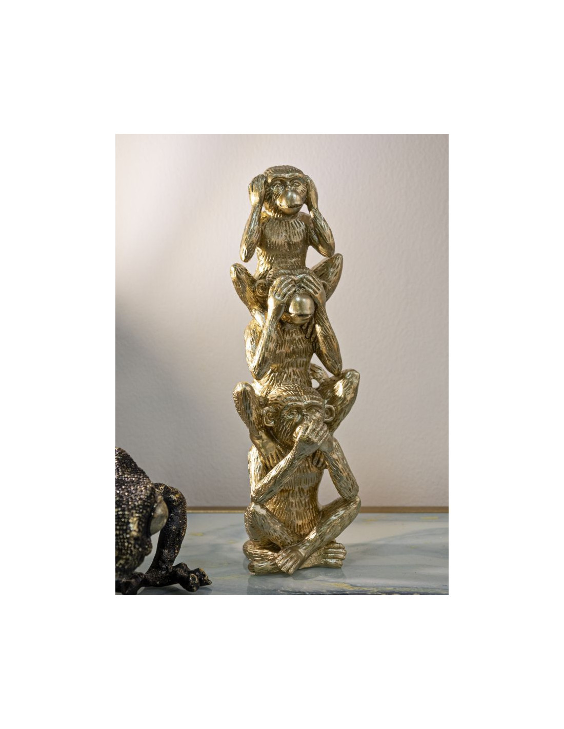 Statuette déco Singes Sagesse Entendre Voir Se Taire Hauteur 30 cm en Résine Doré Reyla