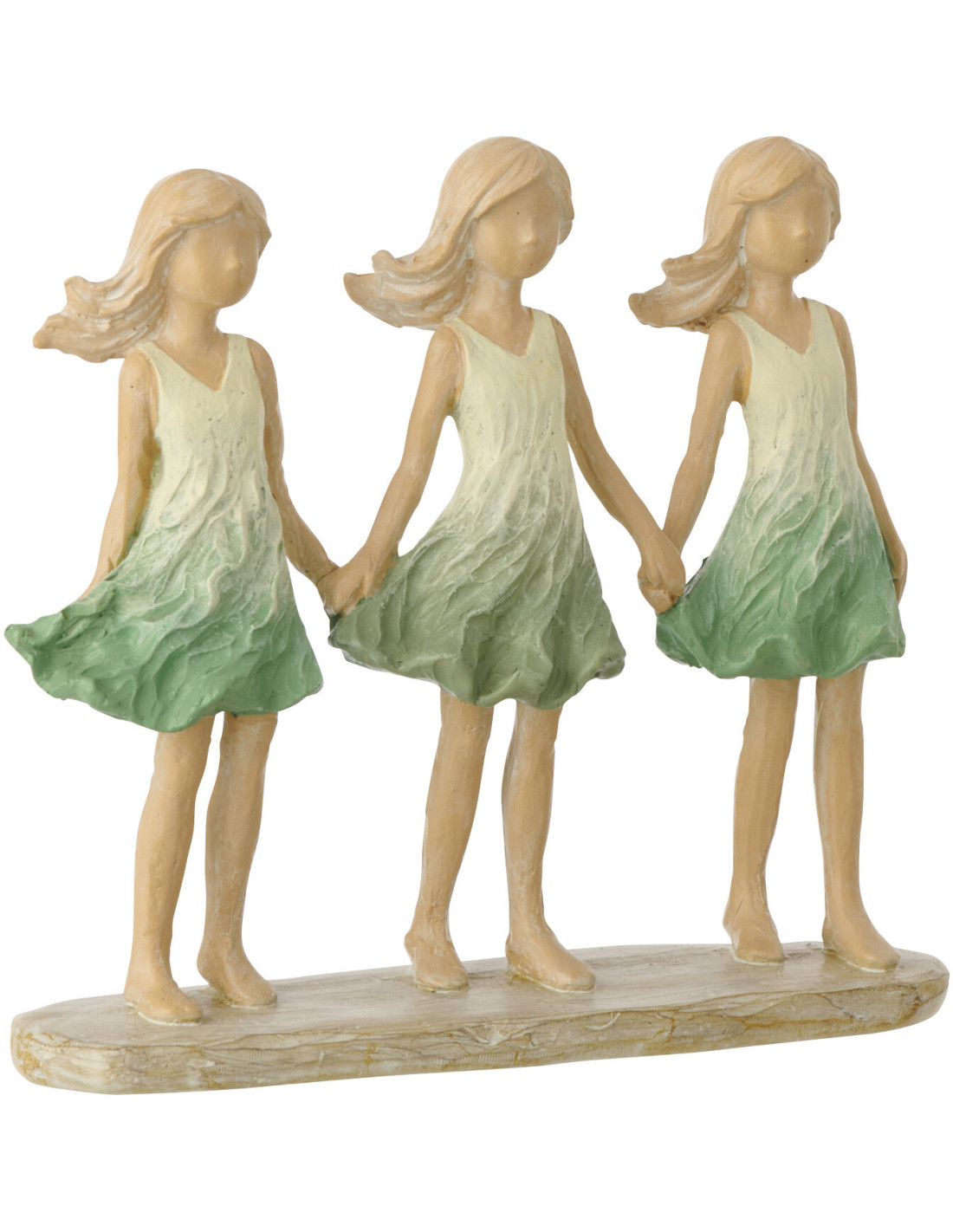 Statuette déco Soeurs H 16 cm Résine Vert Beige Printania