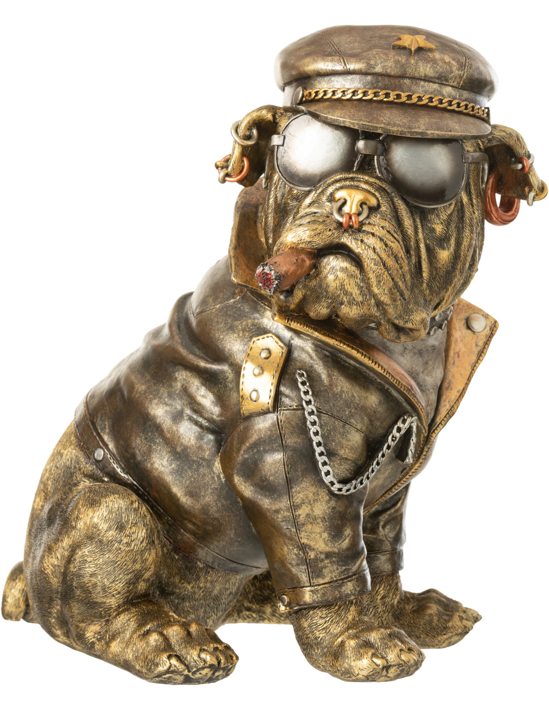 Statuette déco vintage Bulldog Cigare H 33 cm Résine Marron Vieilli Streetdog