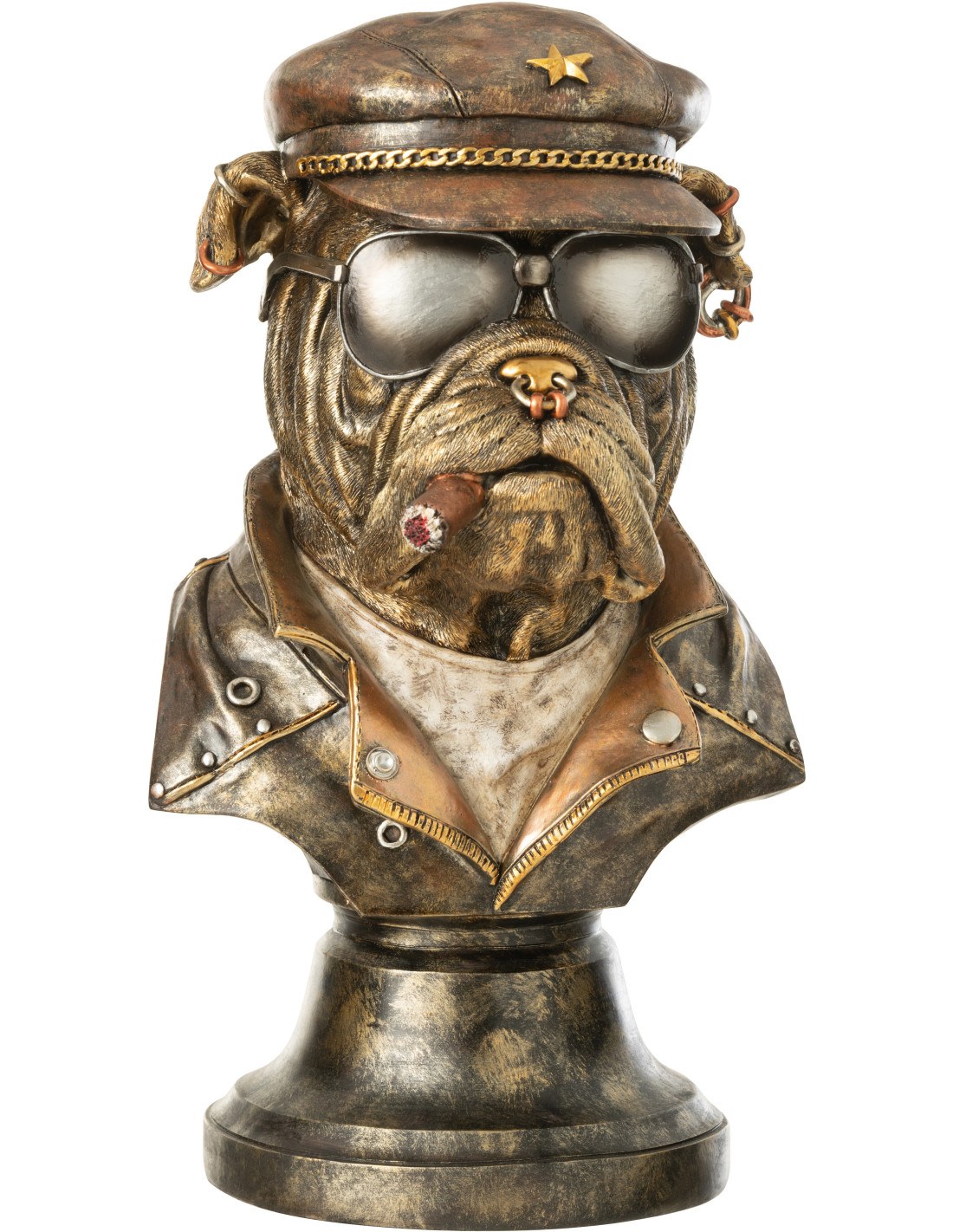 Statuette déco vintage Buste Bulldog Cigare H 36 cm Résine Marron Vieilli Streetdog
