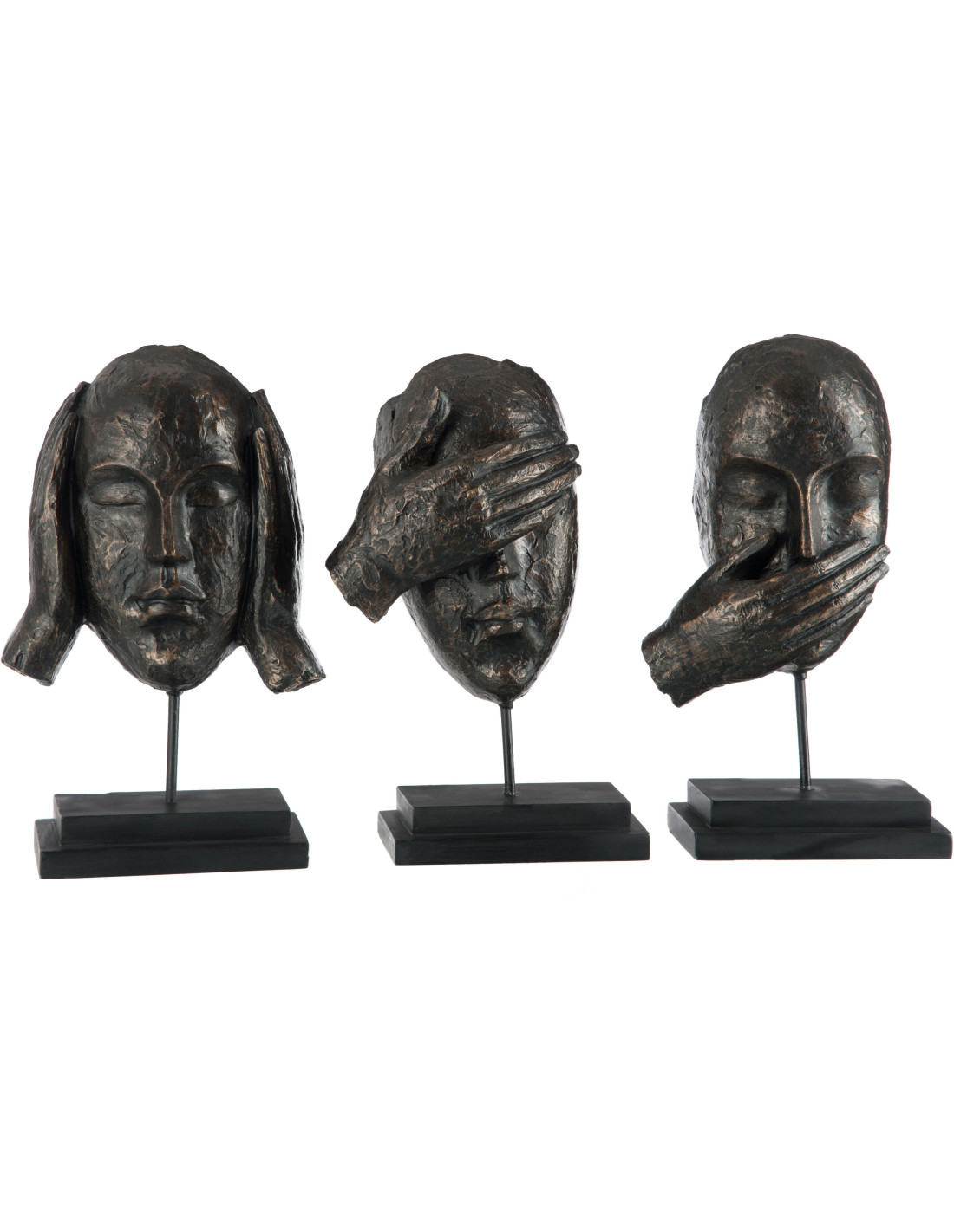 Statuette déco Visage Entendre Voir Se taire Hauteur 28 cm en Résine Marron Fyniel (Lot de 3)