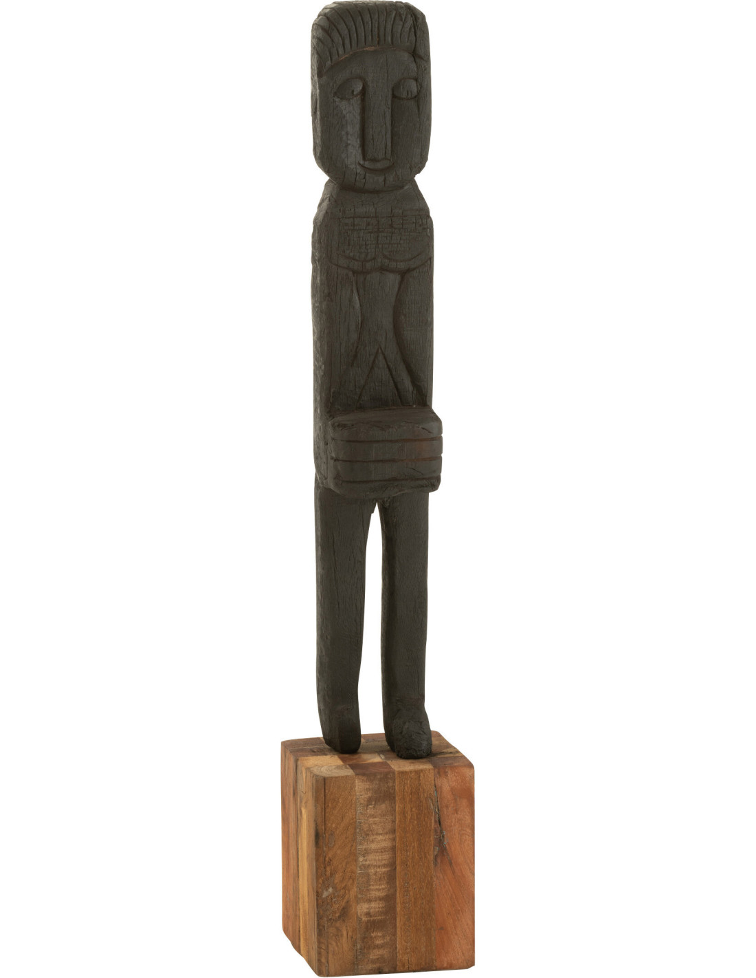 Statuette déco XXL Personnage ethnique Hauteur 115 cm en Bois recyclé Noir Naturel Boro