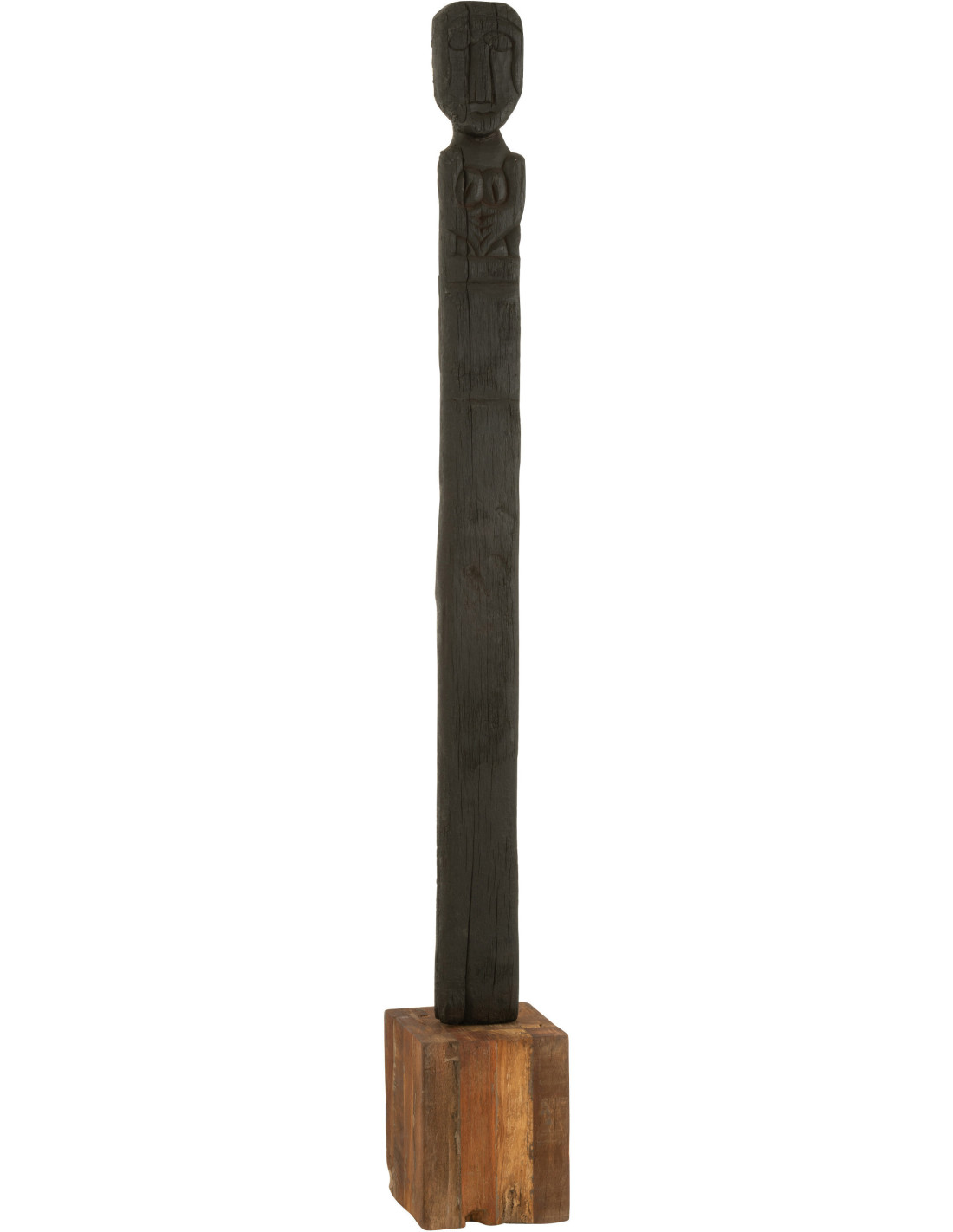 Statuette déco XXL Personnage ethnique Hauteur 160 cm en Bois recyclé Noir Naturel Kuru