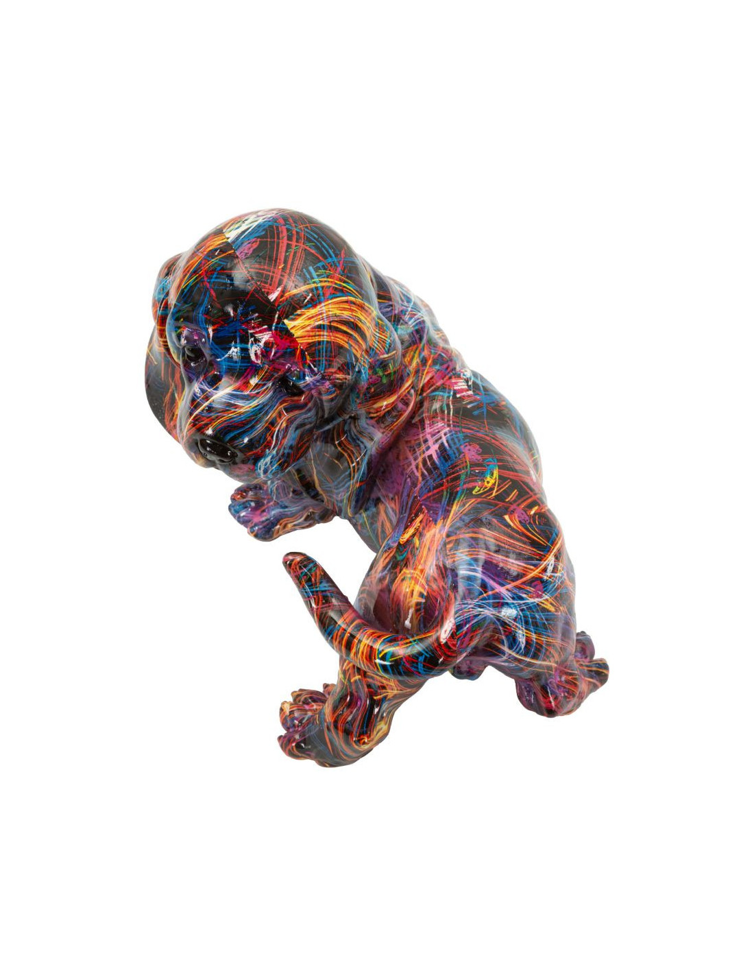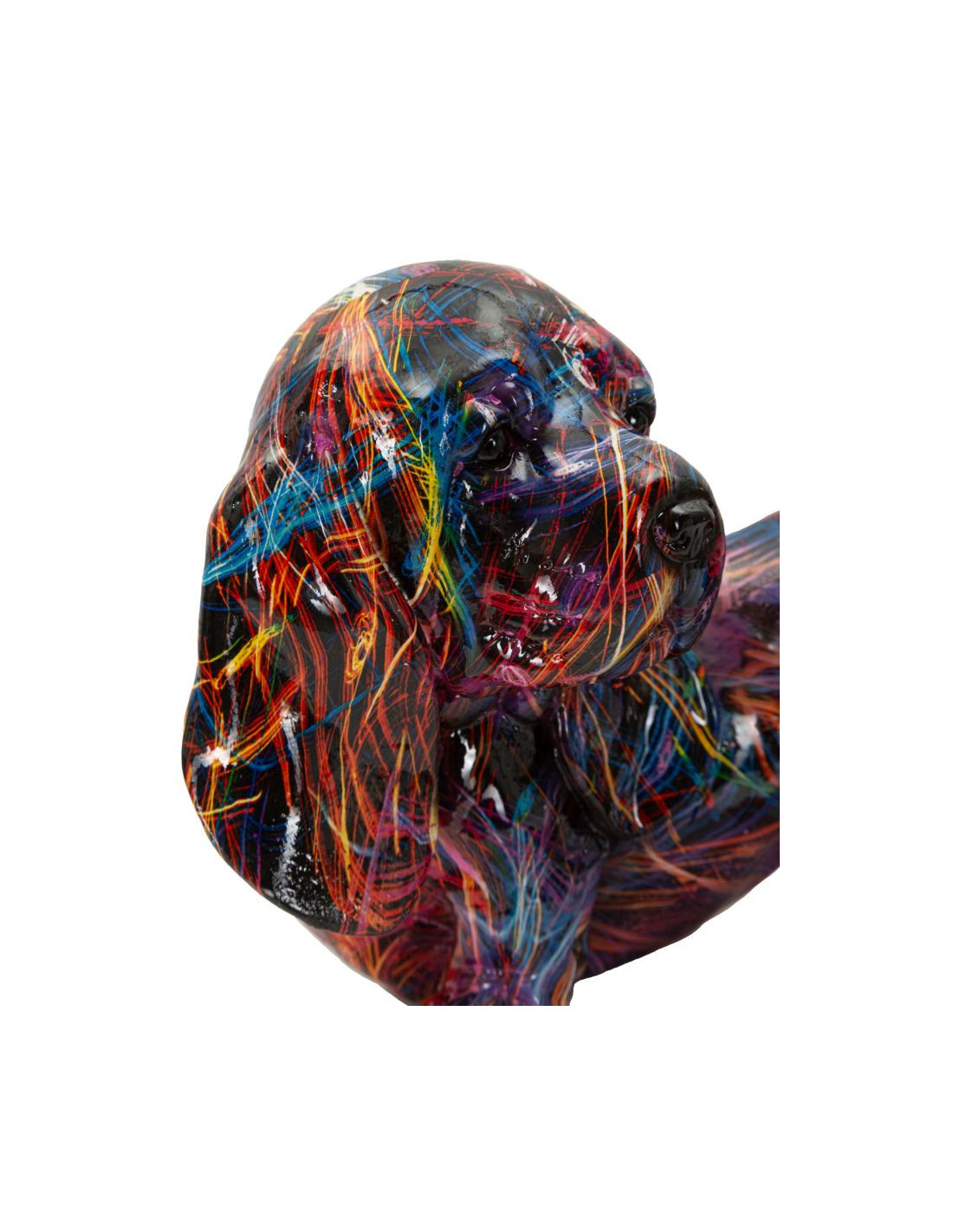 Statuette design Pop Art Chien Teckel 20 cm Résine Multicolore Motif lignes Psyco